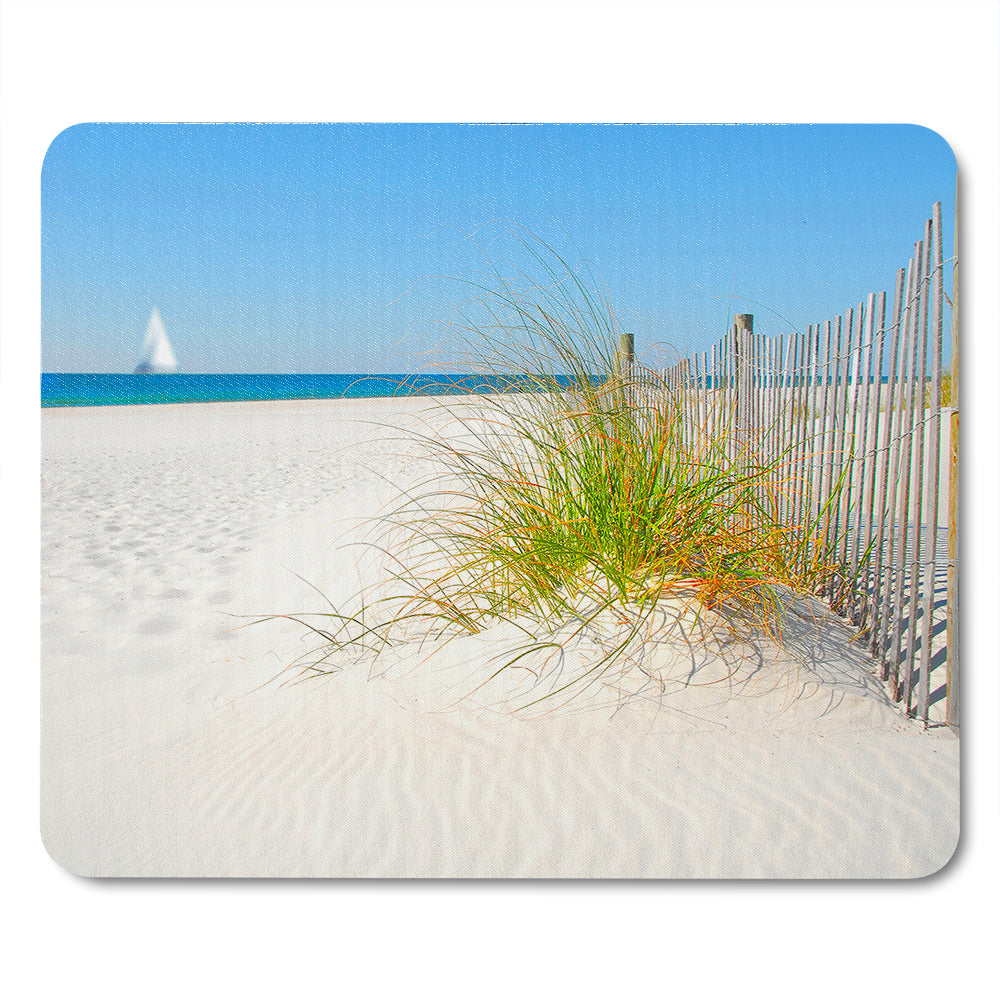 Dune fence by sea grass with sailboat on horizon Designer Mouse Mat