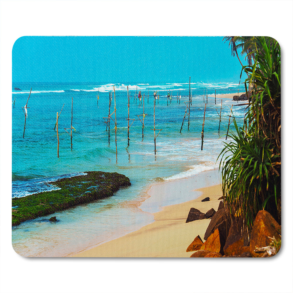 Fishermen on the ocean coast of Sri Lanka Designer Mouse Mat