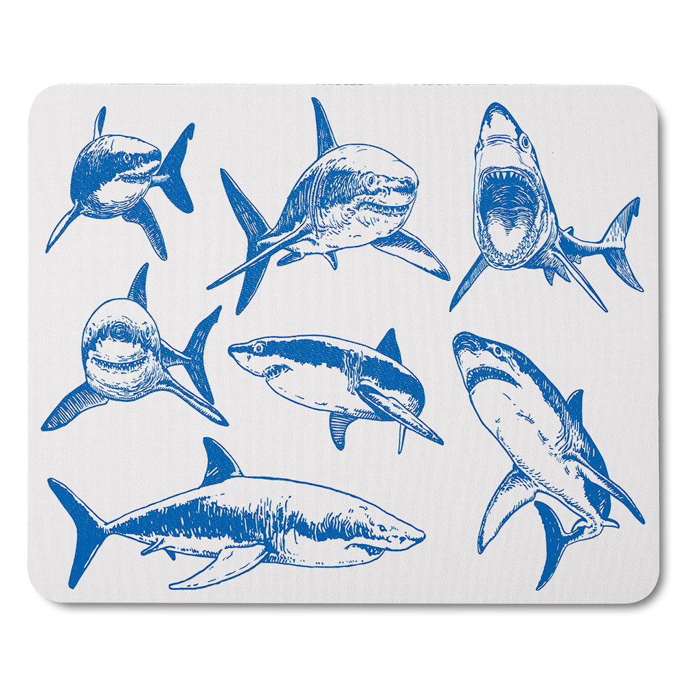 Graphical of blue sharks isolated on white background Designer Mouse Mat