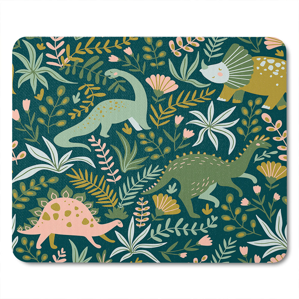 Hand drawn dinosaurs and tropical leaves and flowers. Designer Mouse Mat