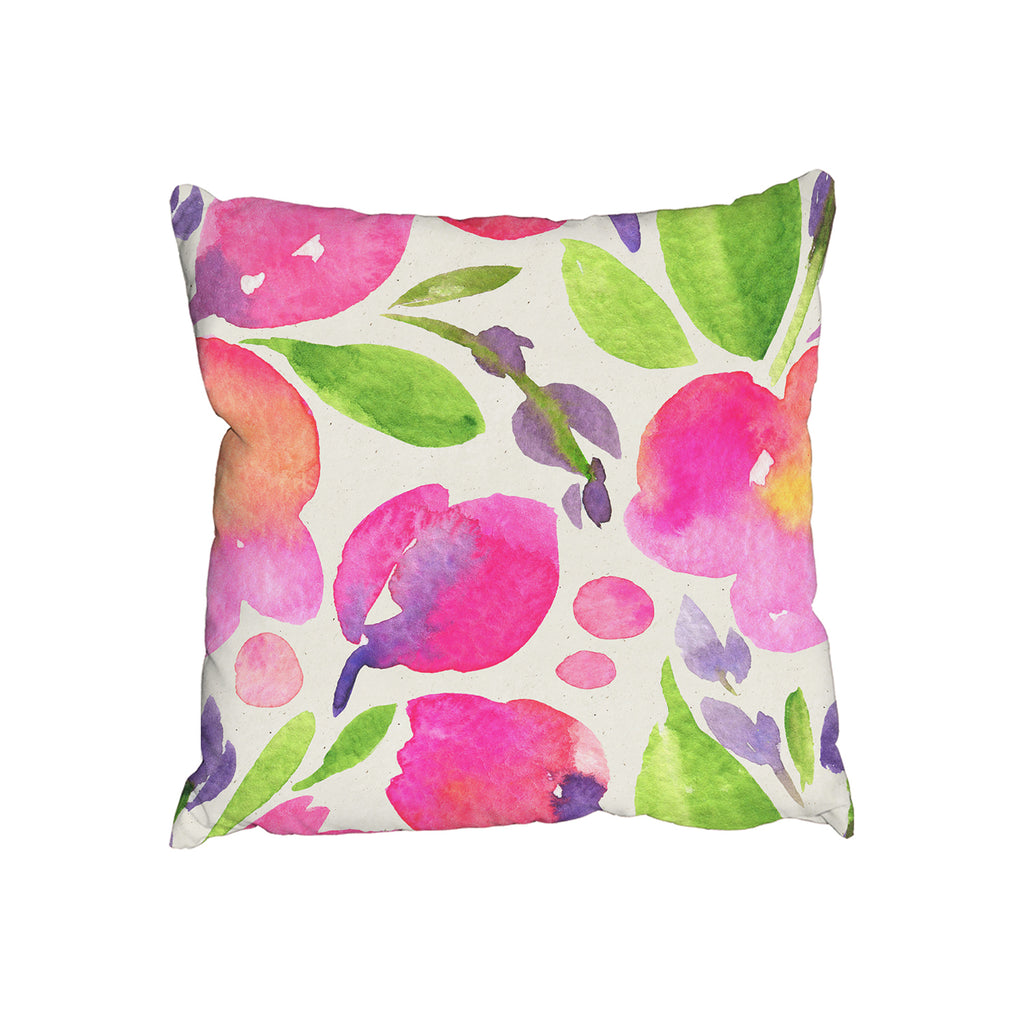 Pink roses, blue wildflowers (Outdoor Cushion)