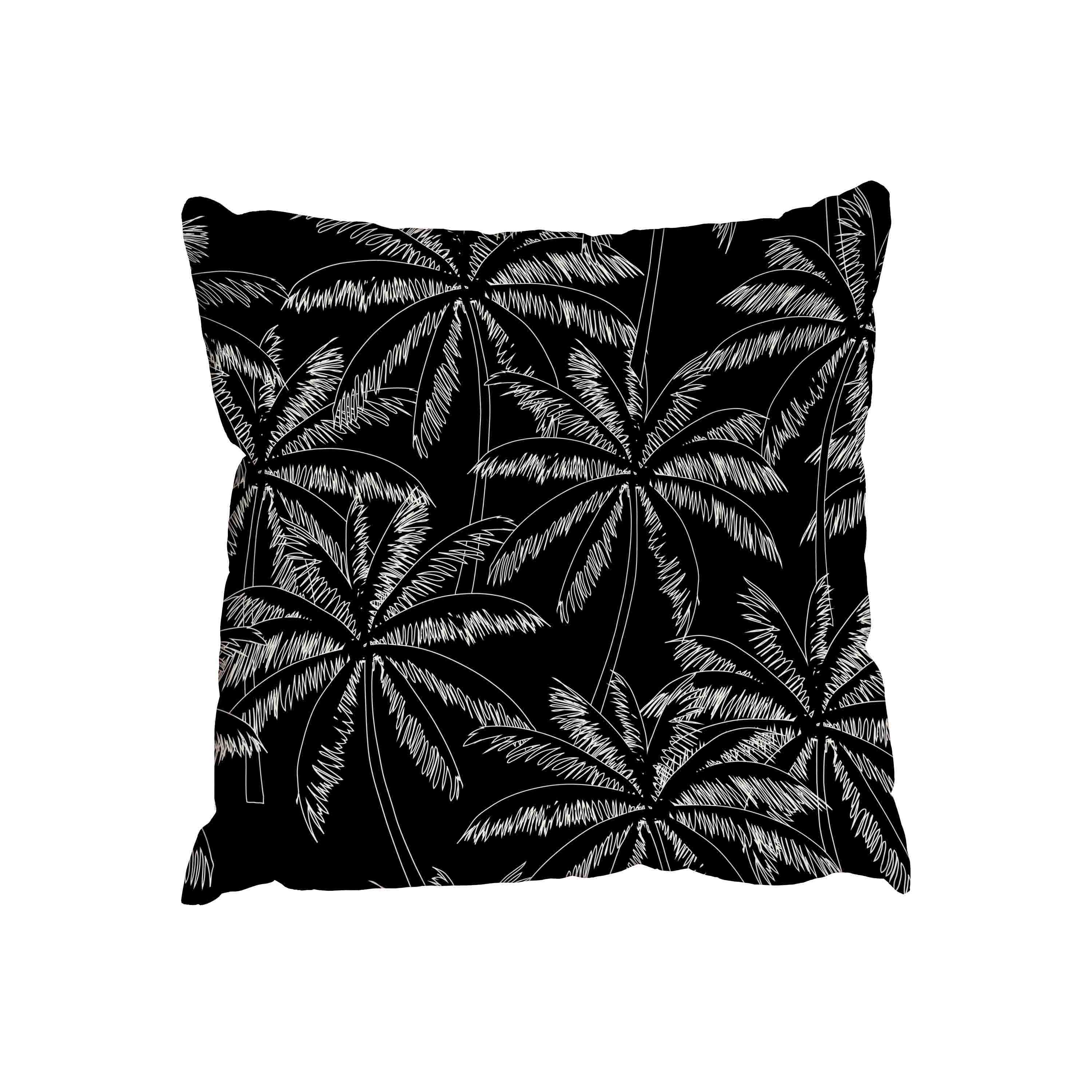 White outline palm trees on the black (Outdoor Cushion)
