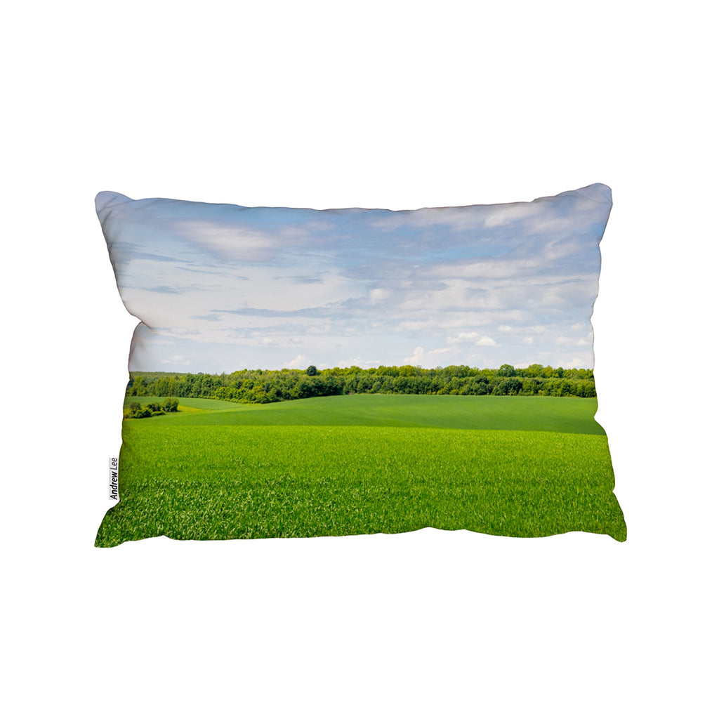Summer Landscape With Hilly Green Field And Forest In The Distance (Outdoor Cushion)