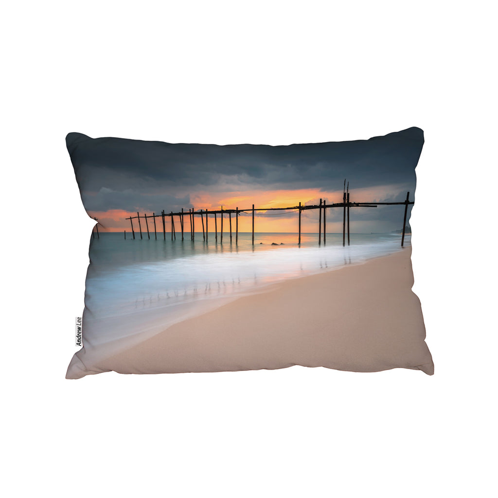 Wood Bridge Sunset At Sea Thailand (Outdoor Cushion) (Outdoor Cushion)