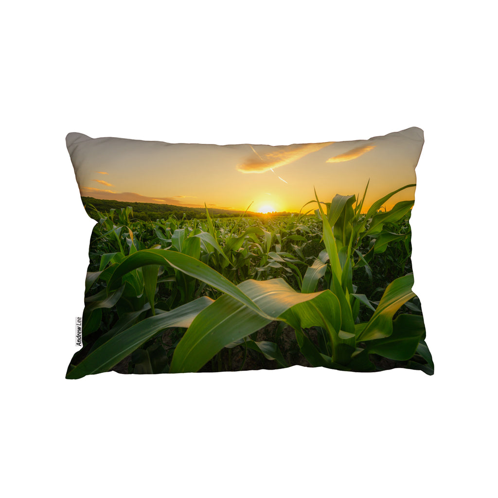Young Green Corn Growing On The Field At Sunset (Outdoor Cushion) (Outdoor Cushion)