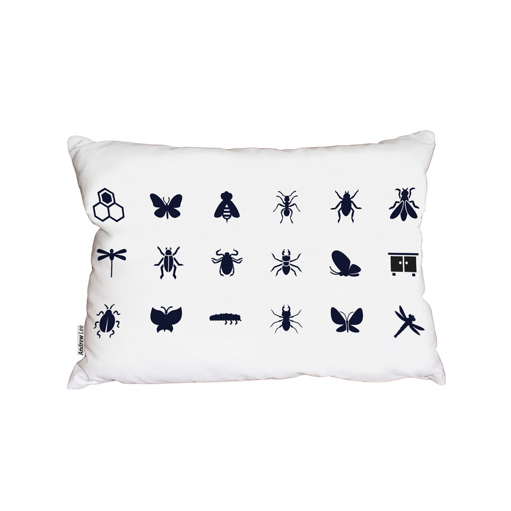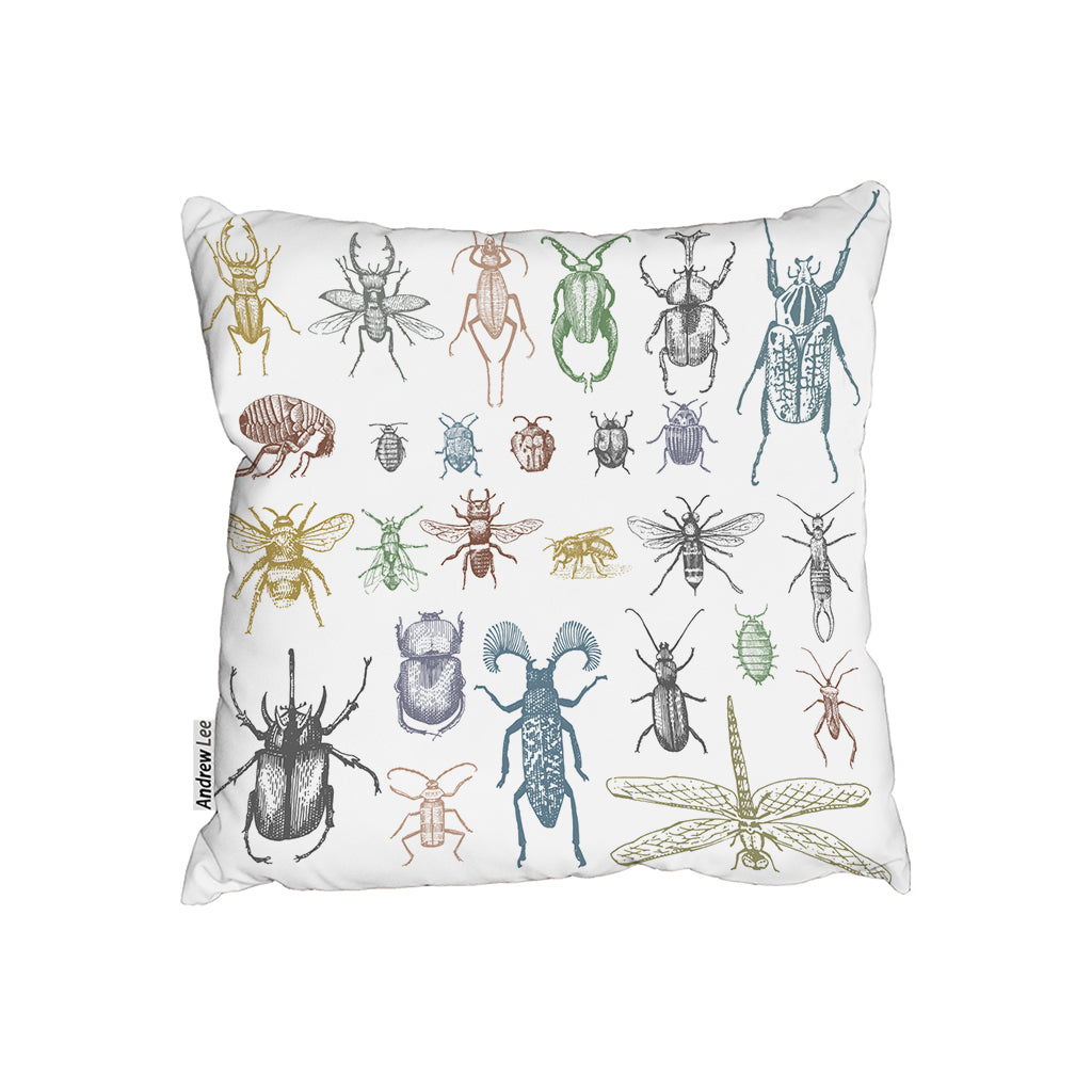 Big Set Of Insects Bugs Beetles And Bees Many Species In Vintage Old Hand Drawn Style (Outdoor Cushion)