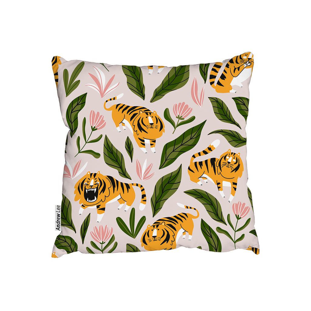 Cute Tigers And Tropical Leaves And Flowers (Outdoor Cushion)