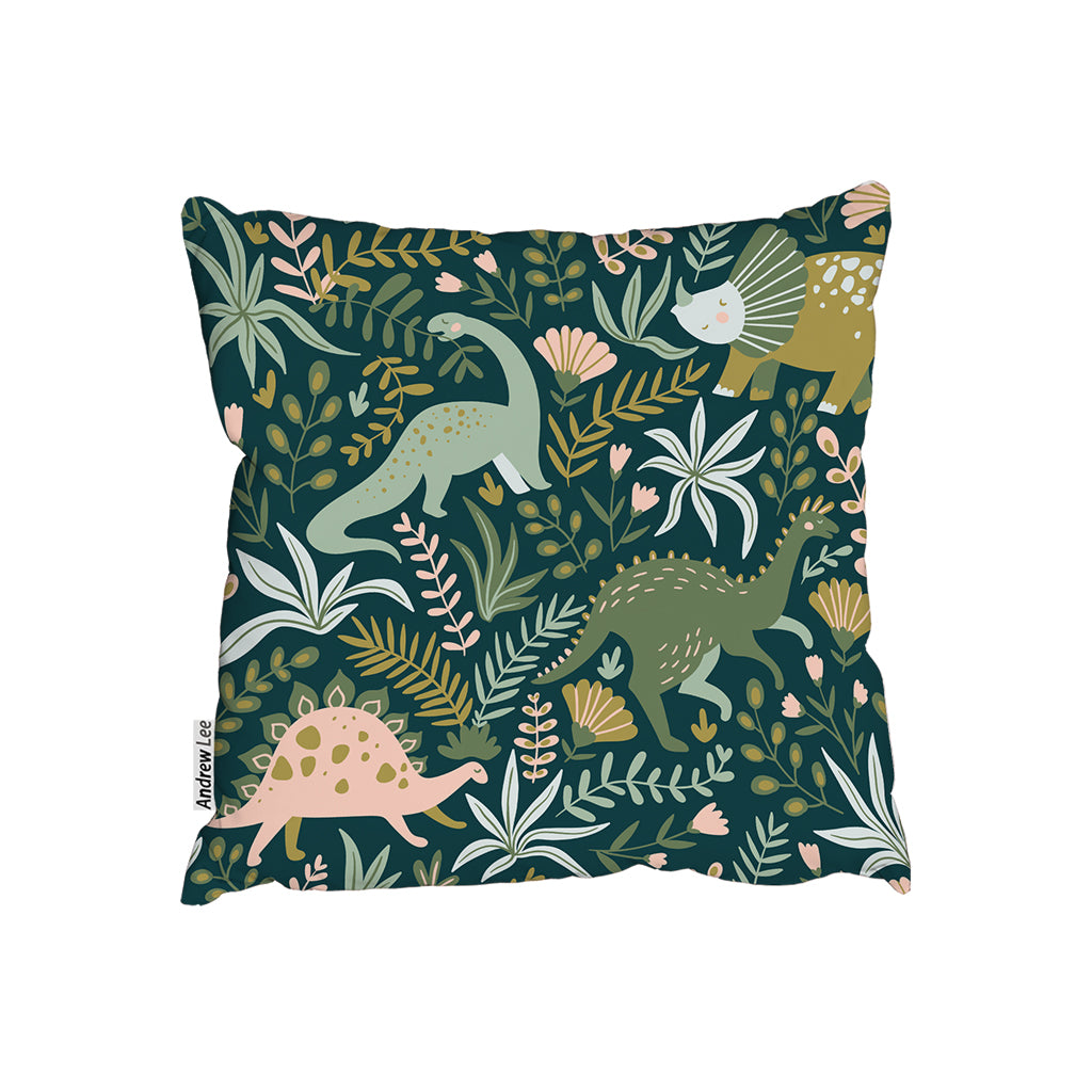 Hand Drawn Dinosaurs And Tropical Leaves And Flowers. (Outdoor Cushion)