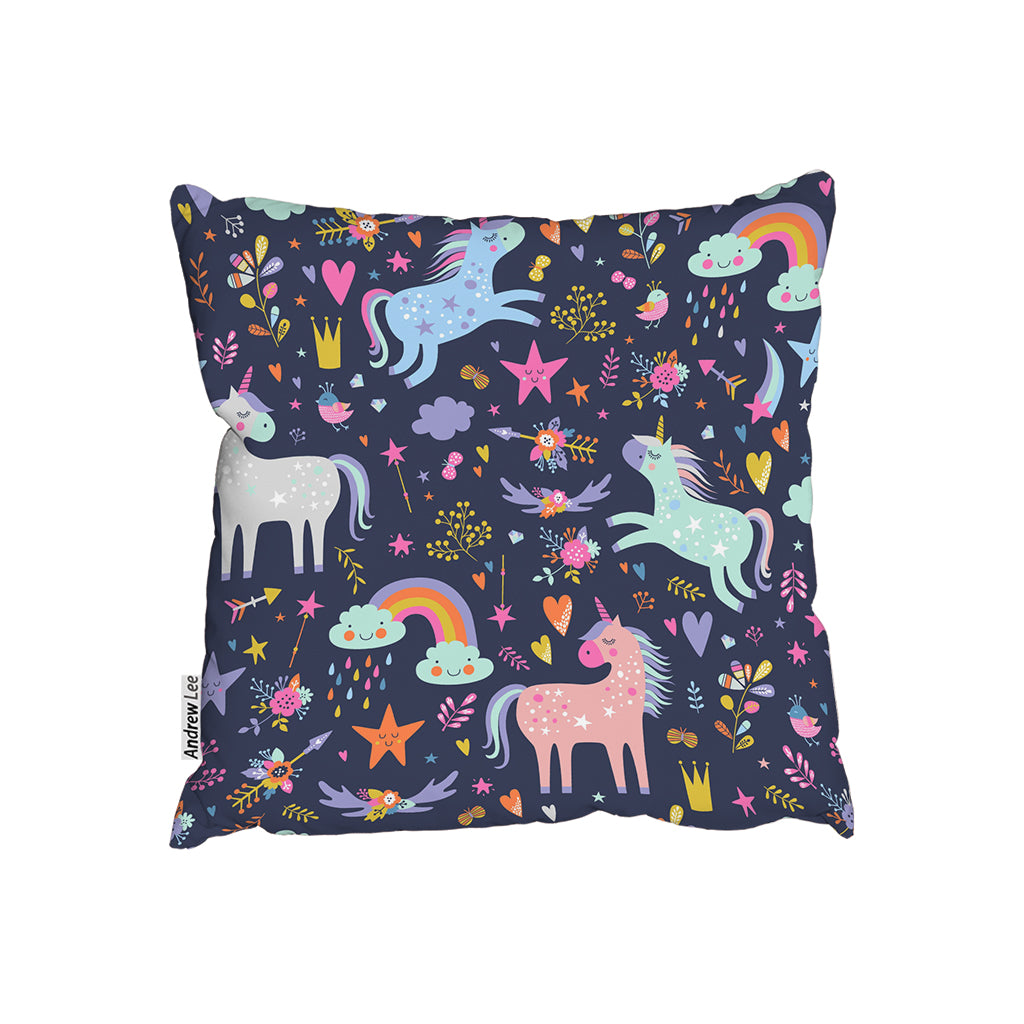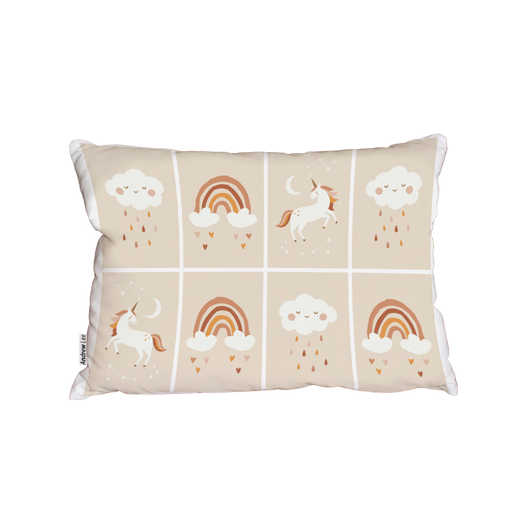 Scandinavian Style Kids Room Decoration. Cute Hand Drawn Unicorn, Rainbow And Cloud (Outdoor Cushion)
