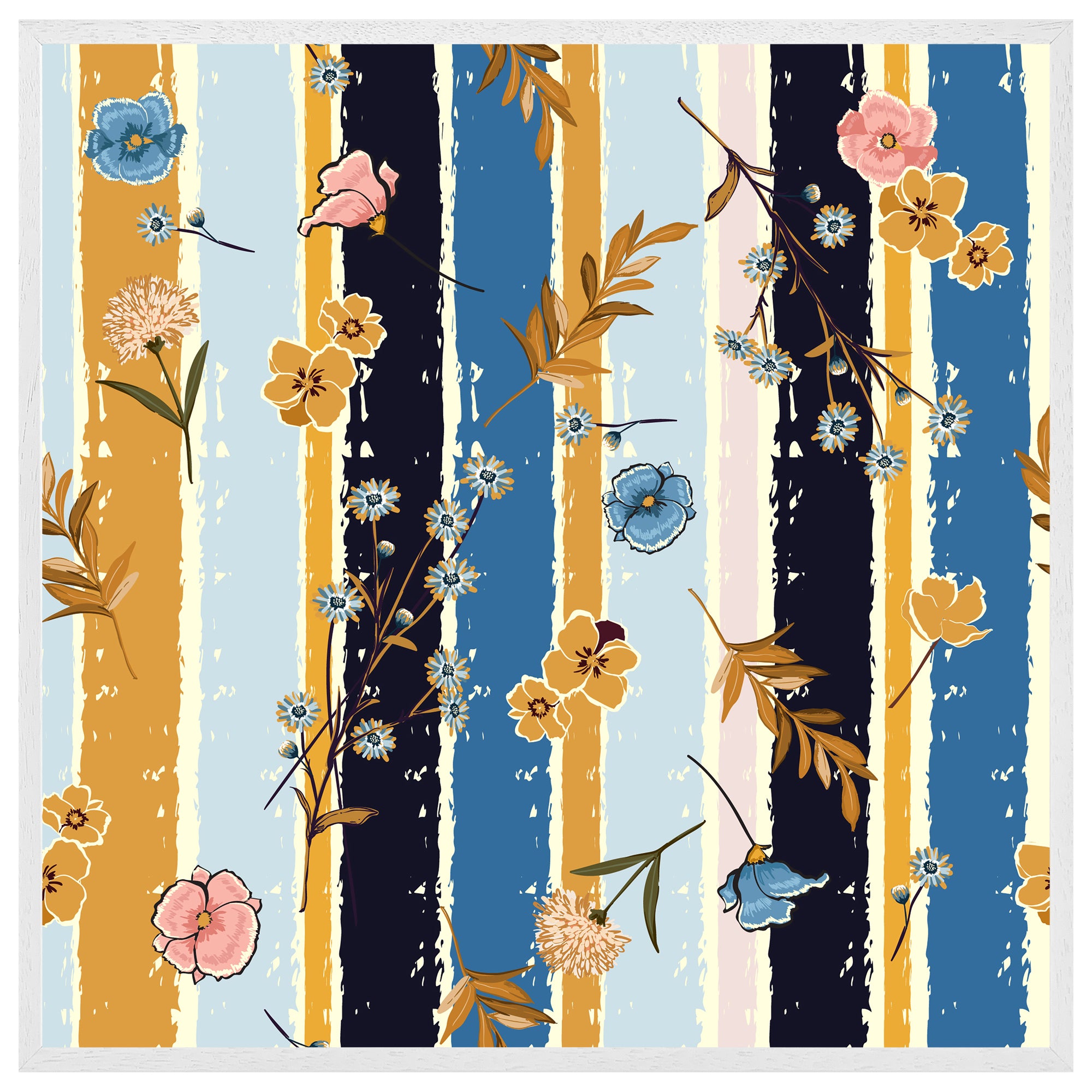 Beautiful meadow flowers on candy colourful brush stripe (Picutre Frame)