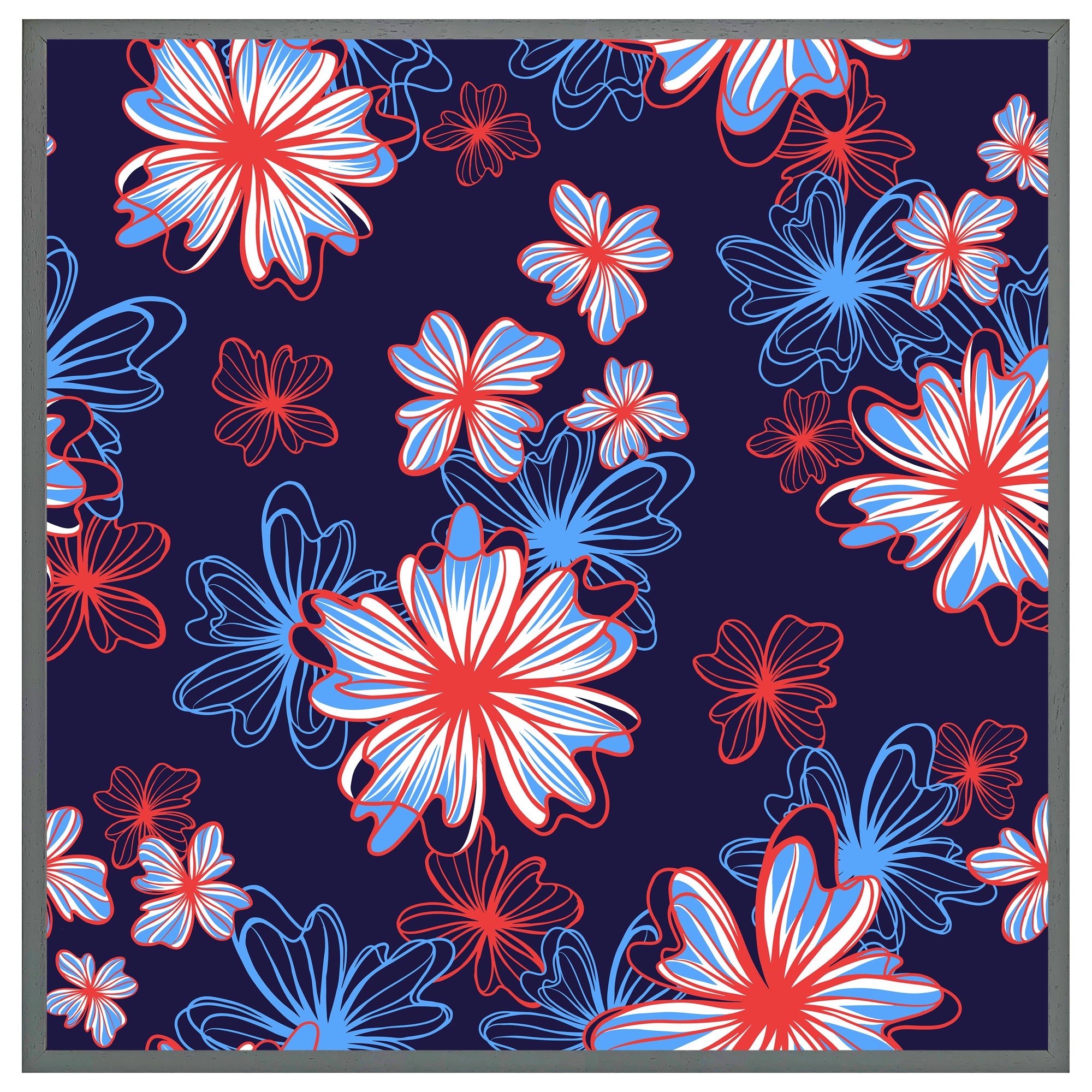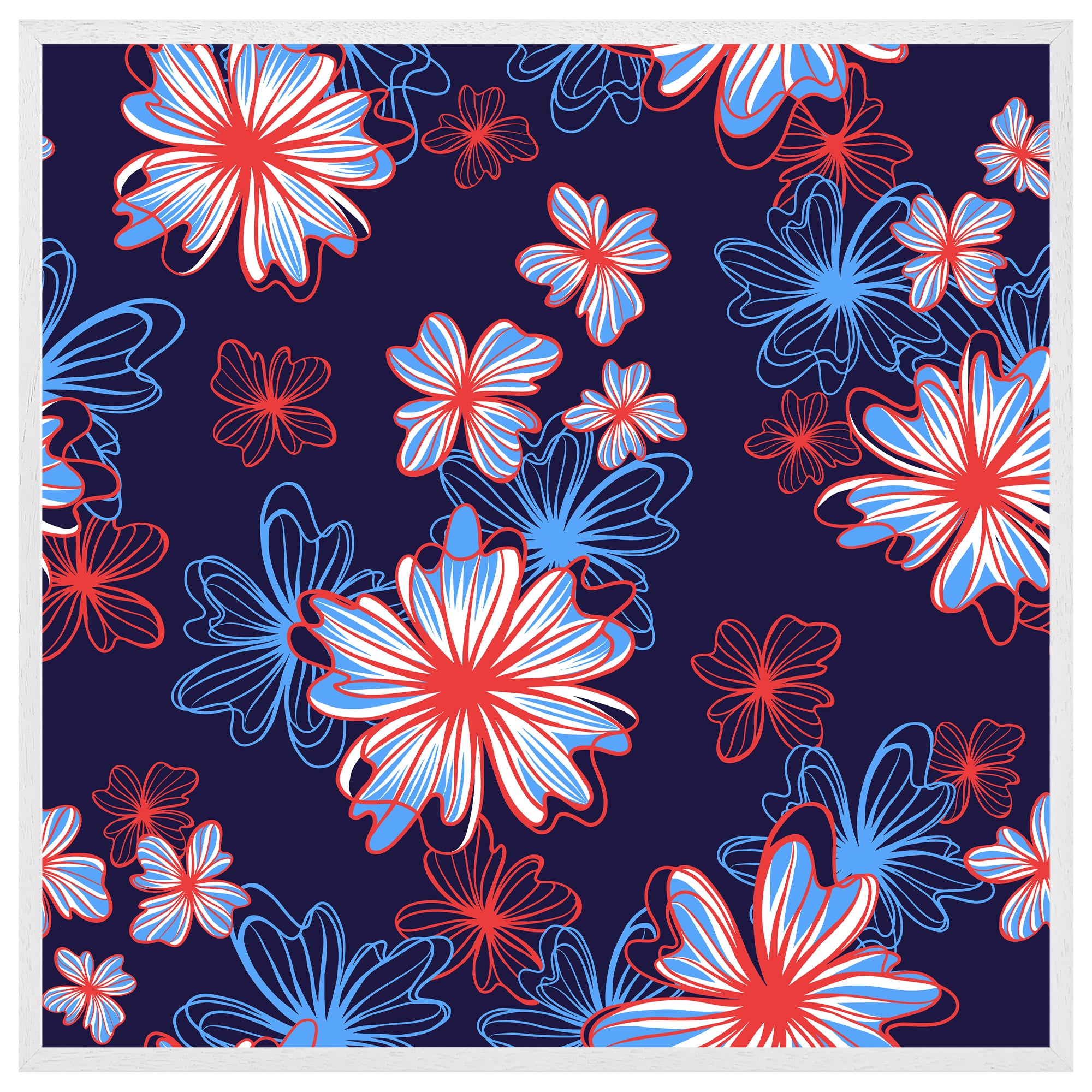 Red, white & blue flower print (Picutre Frame)