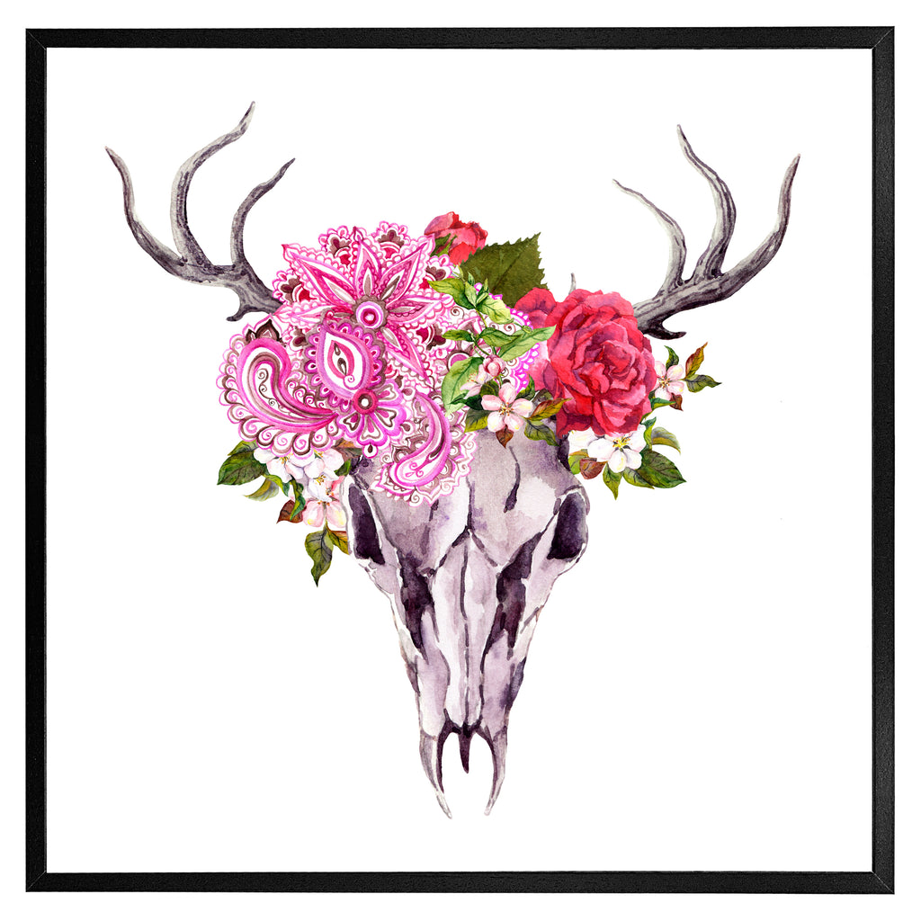 Deer animal skull with flowers and feathers (Picutre Frame)