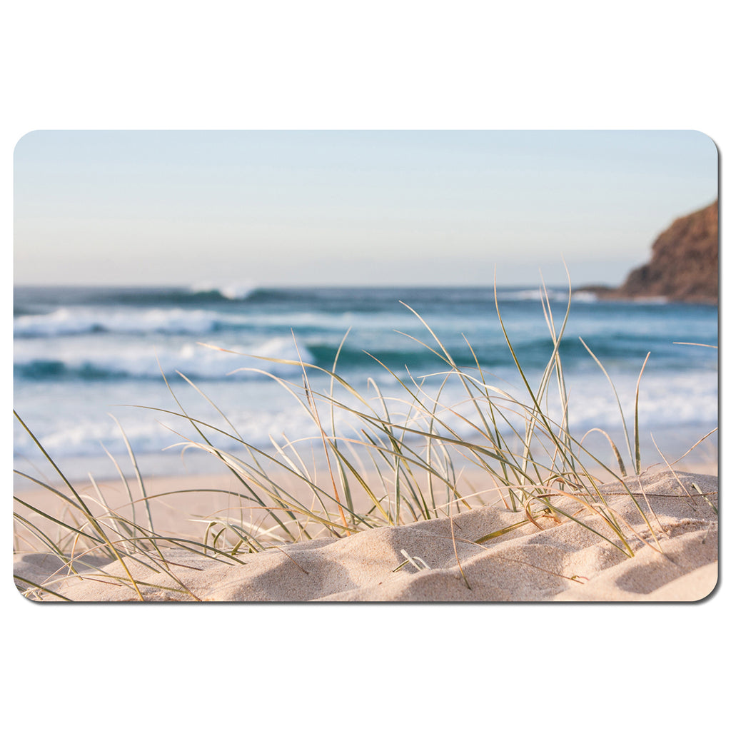 sunrise light on white sand beach with dune grass in Australia with turquoise surf waves of the pacific ocean (Placemat)