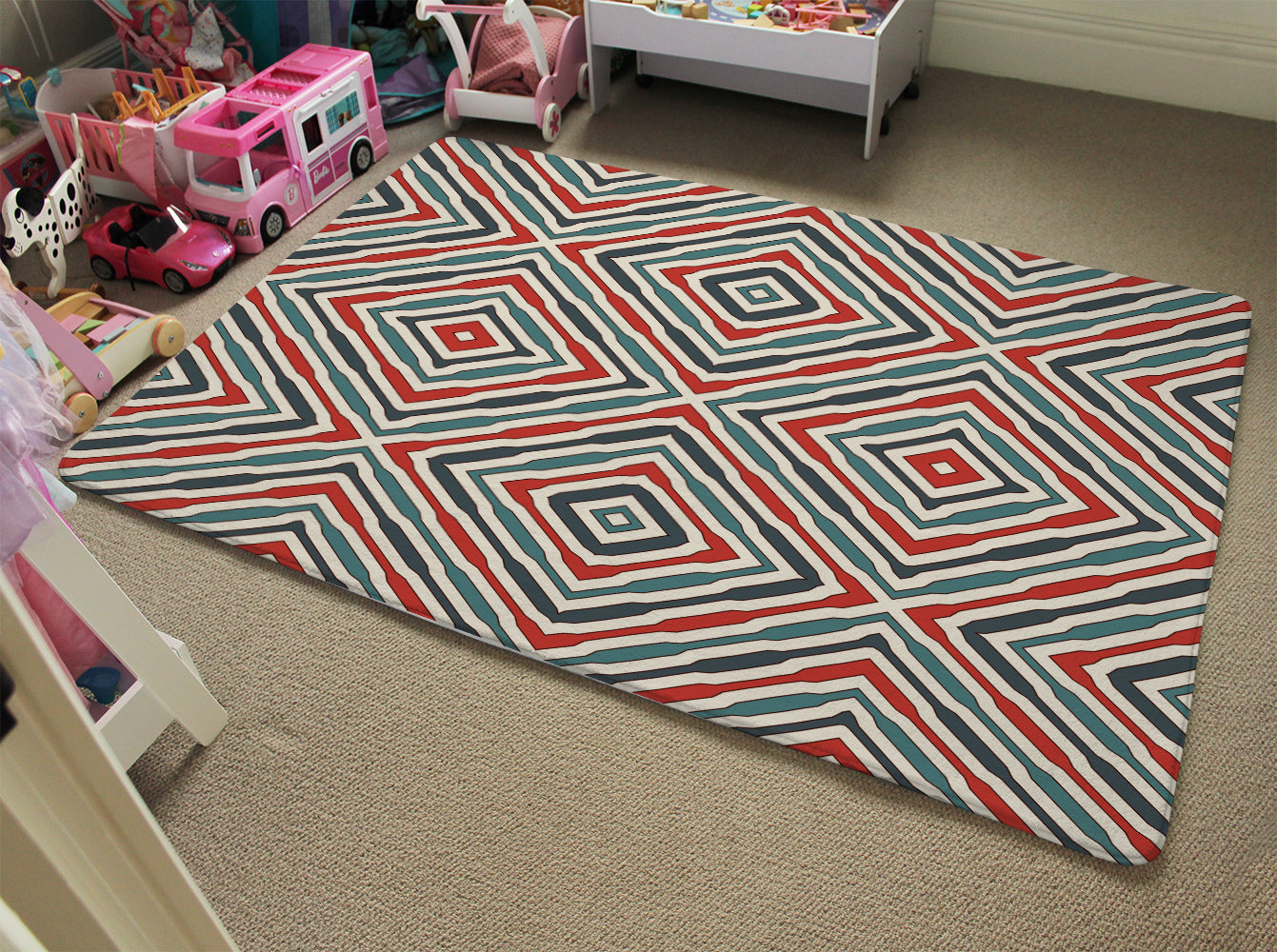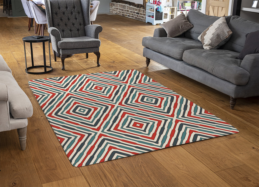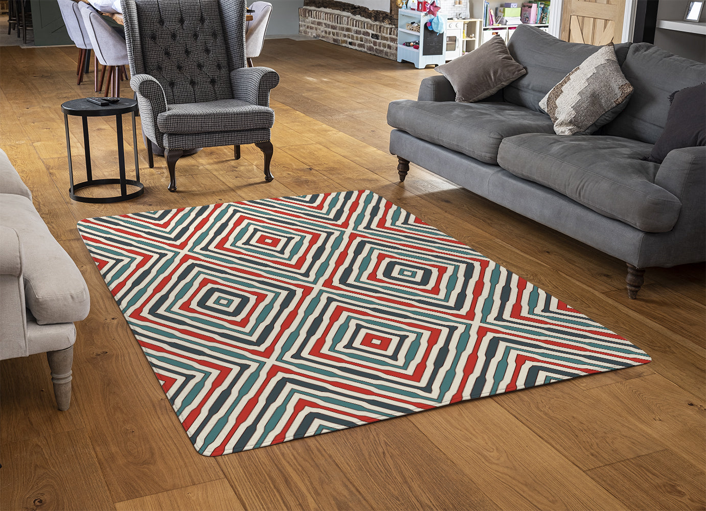 Repeated squares and rhombuses ornamental abstract Tribal motif (Rug)