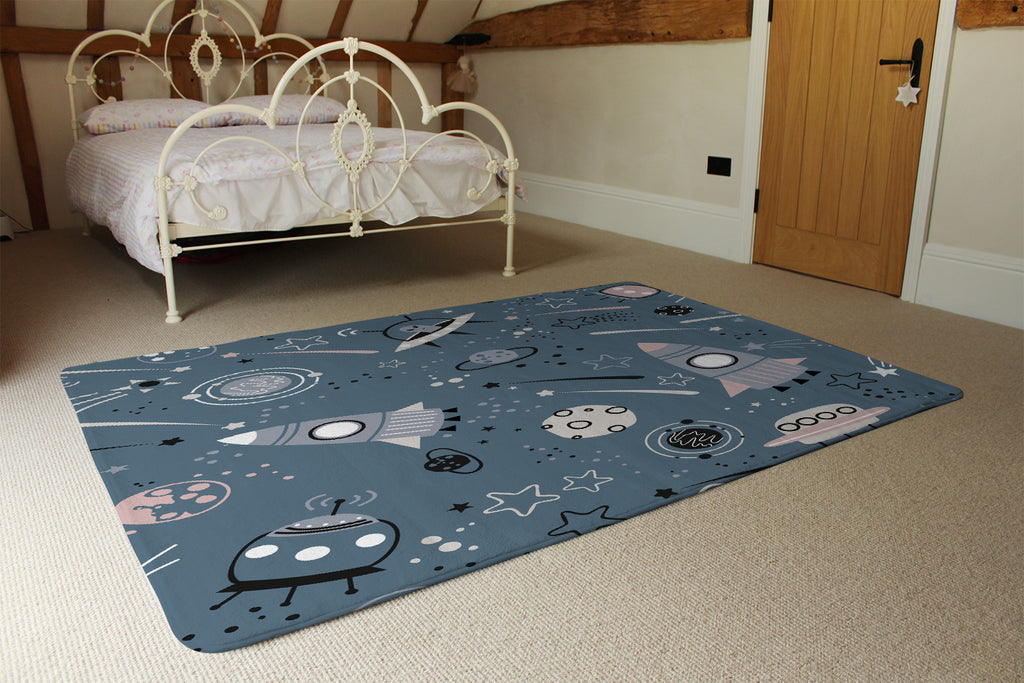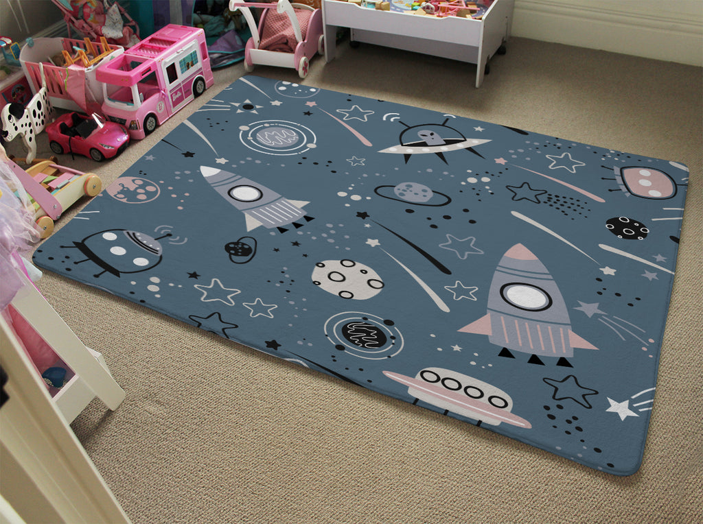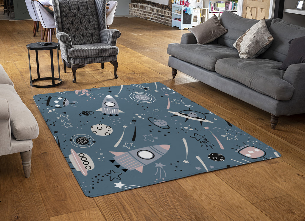 spaceships and planets with stars (Rug)
