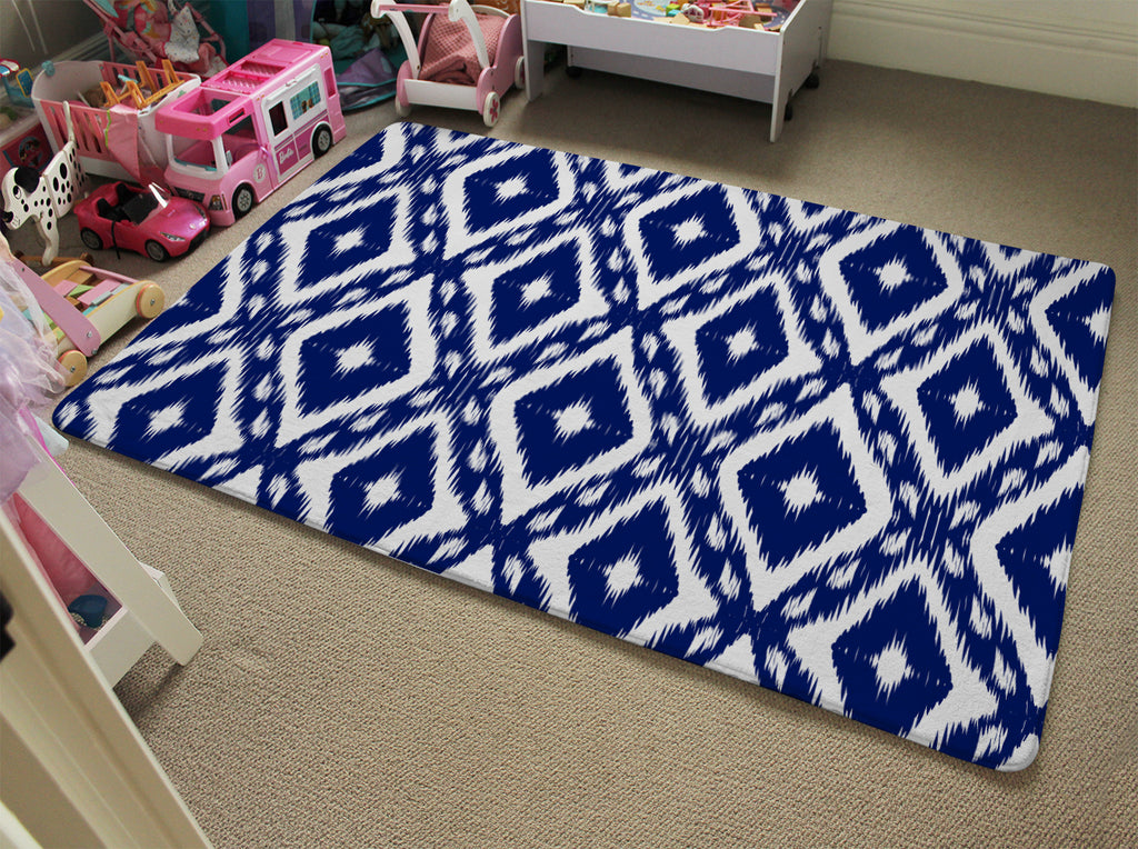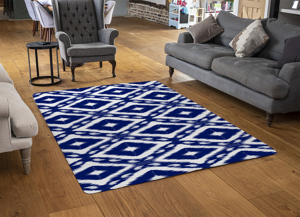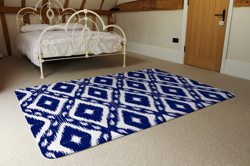 Tribal Art Ikat Ogee in traditional classic blue (Rug)