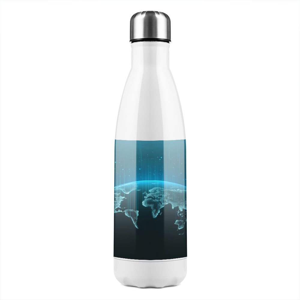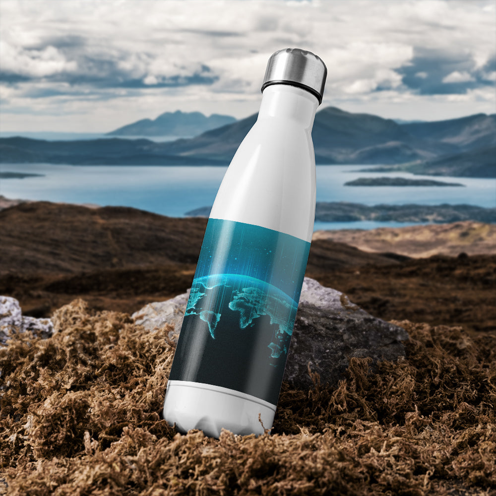 Connection Lines Around Earth Globe Stainless Steel Bottle