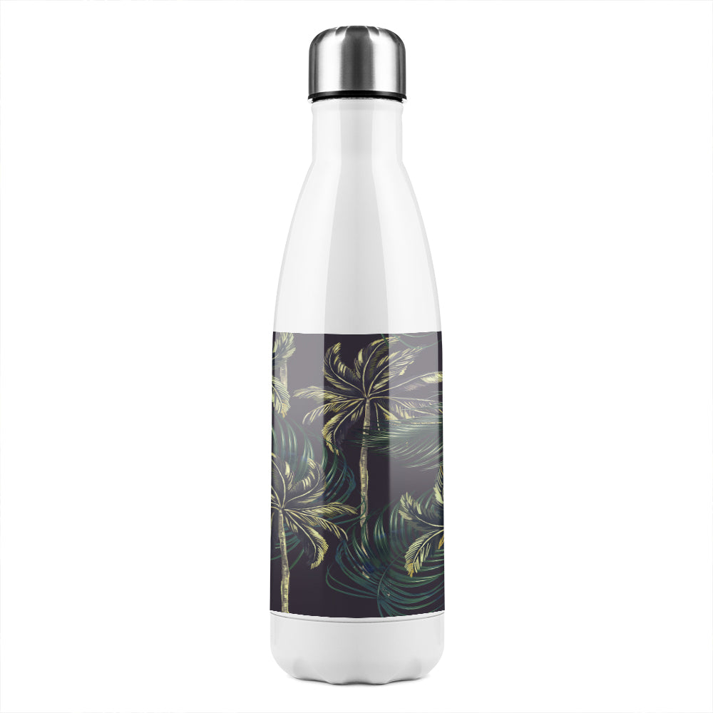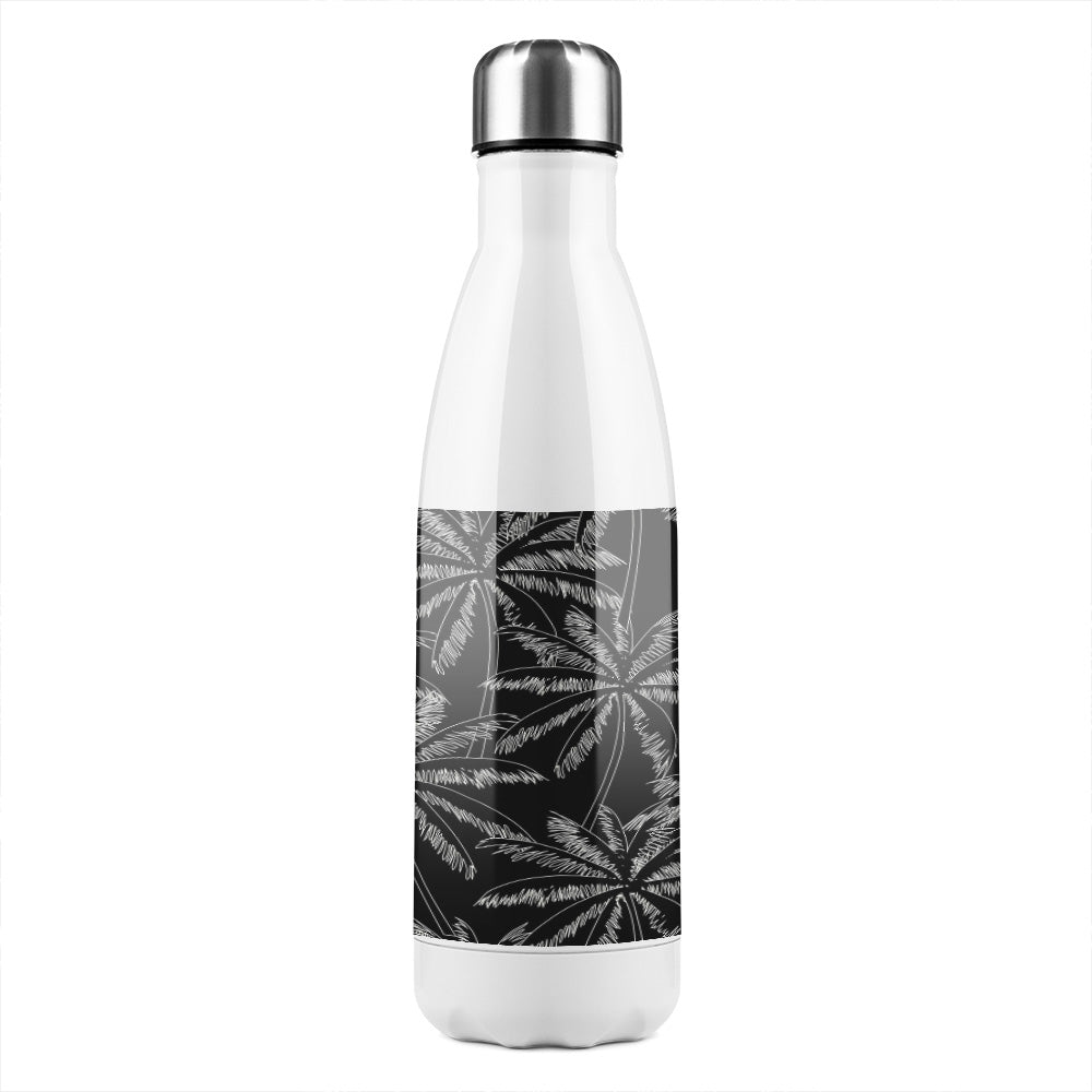 White Palm Trees On Black Stainless Steel Bottle