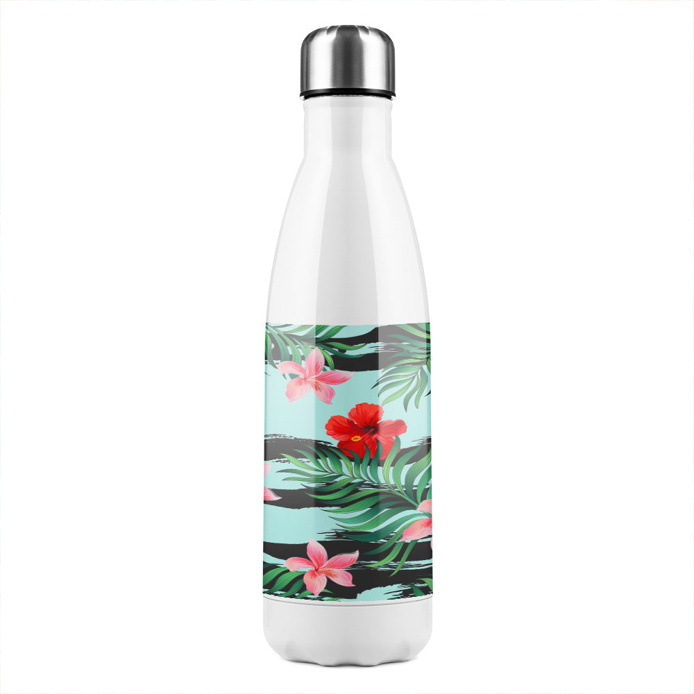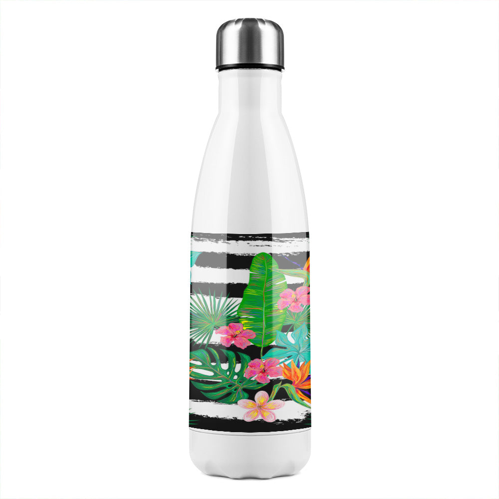 Tropical Plants On Black & White Stripes Stainless Steel Bottle