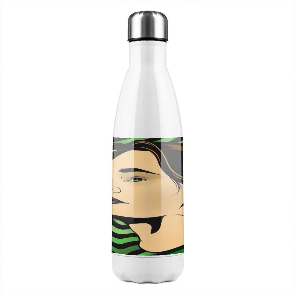 Young woman in tropical leaves Designer Stainless Steel Bottle