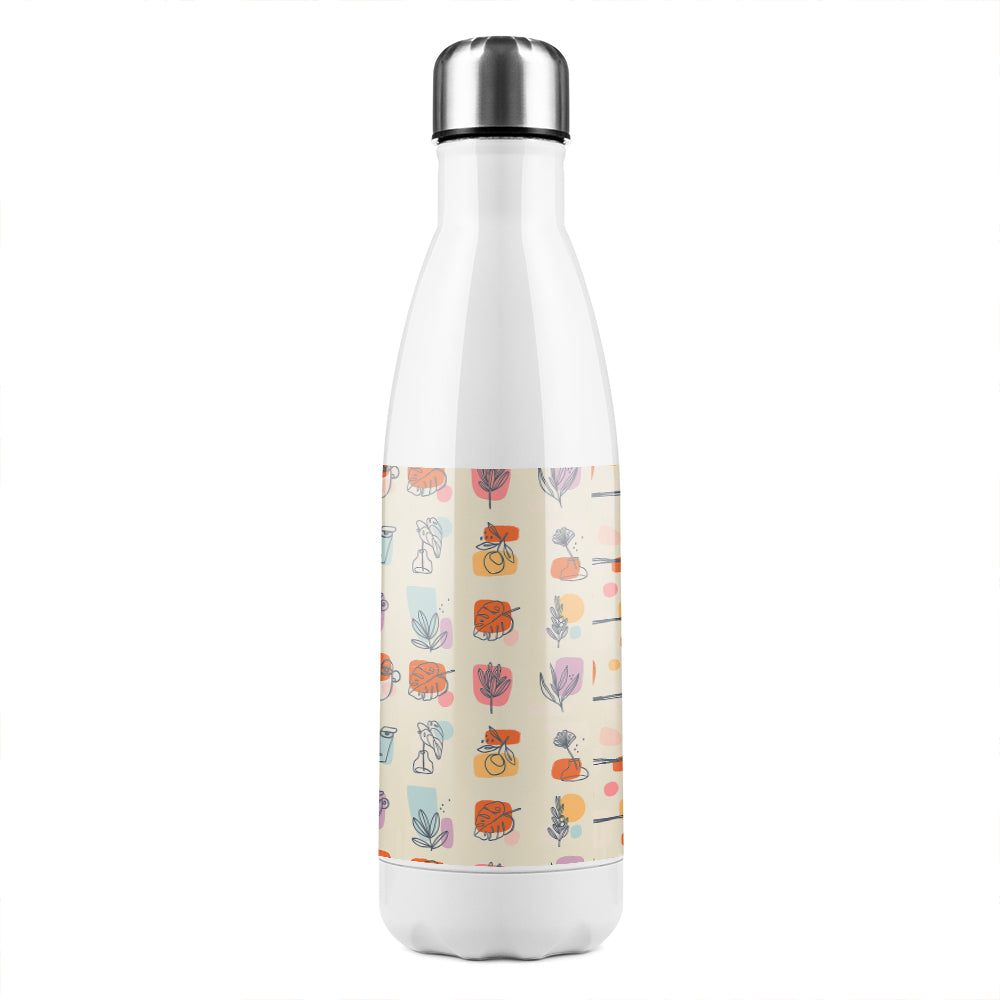 Round texture and floral icons in pastel colours Designer Stainless Steel Bottle
