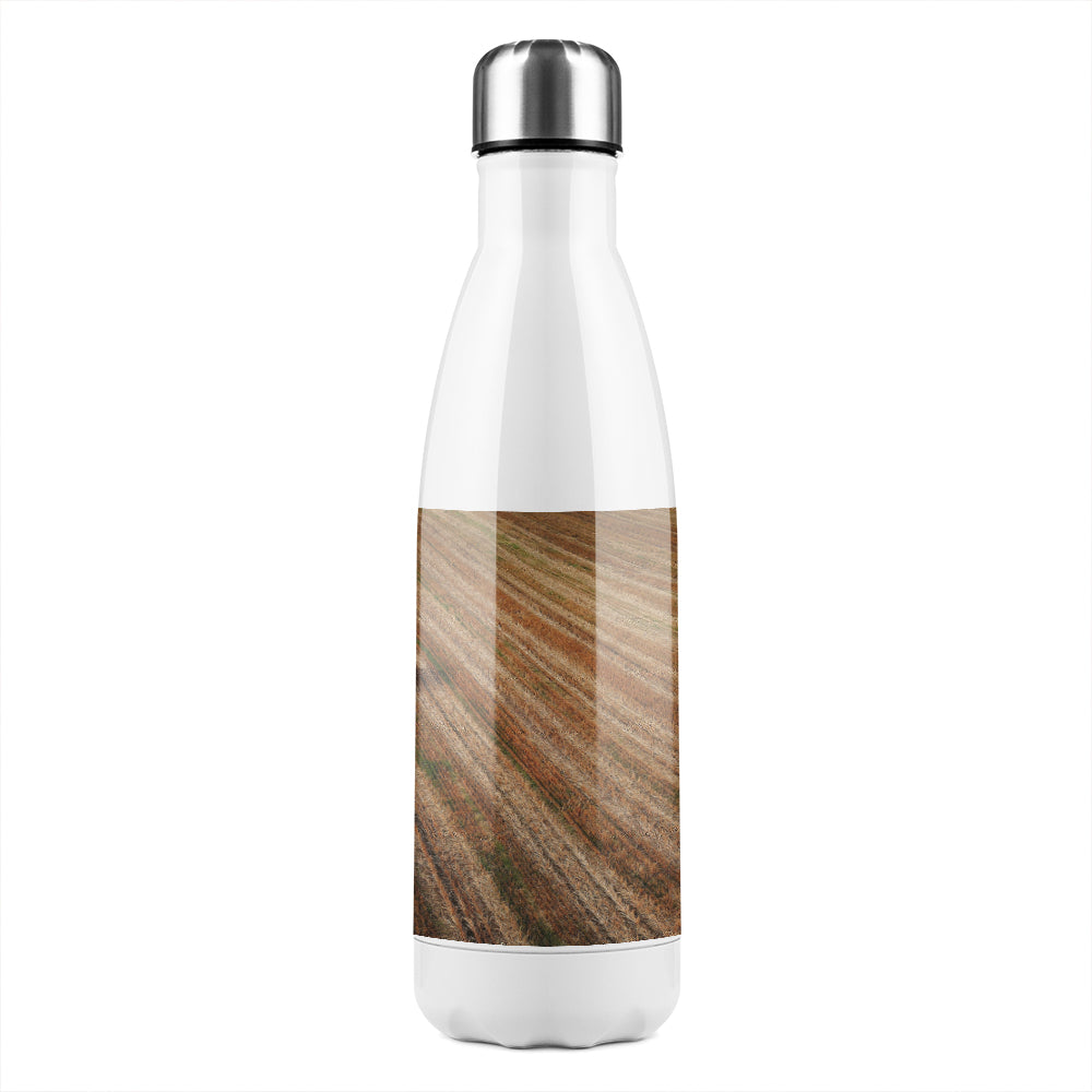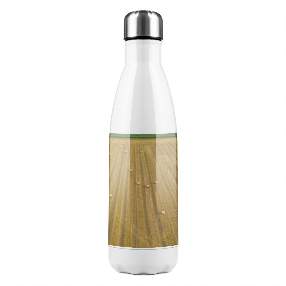 Aerial view of hay bale fields Designer Stainless Steel Bottle