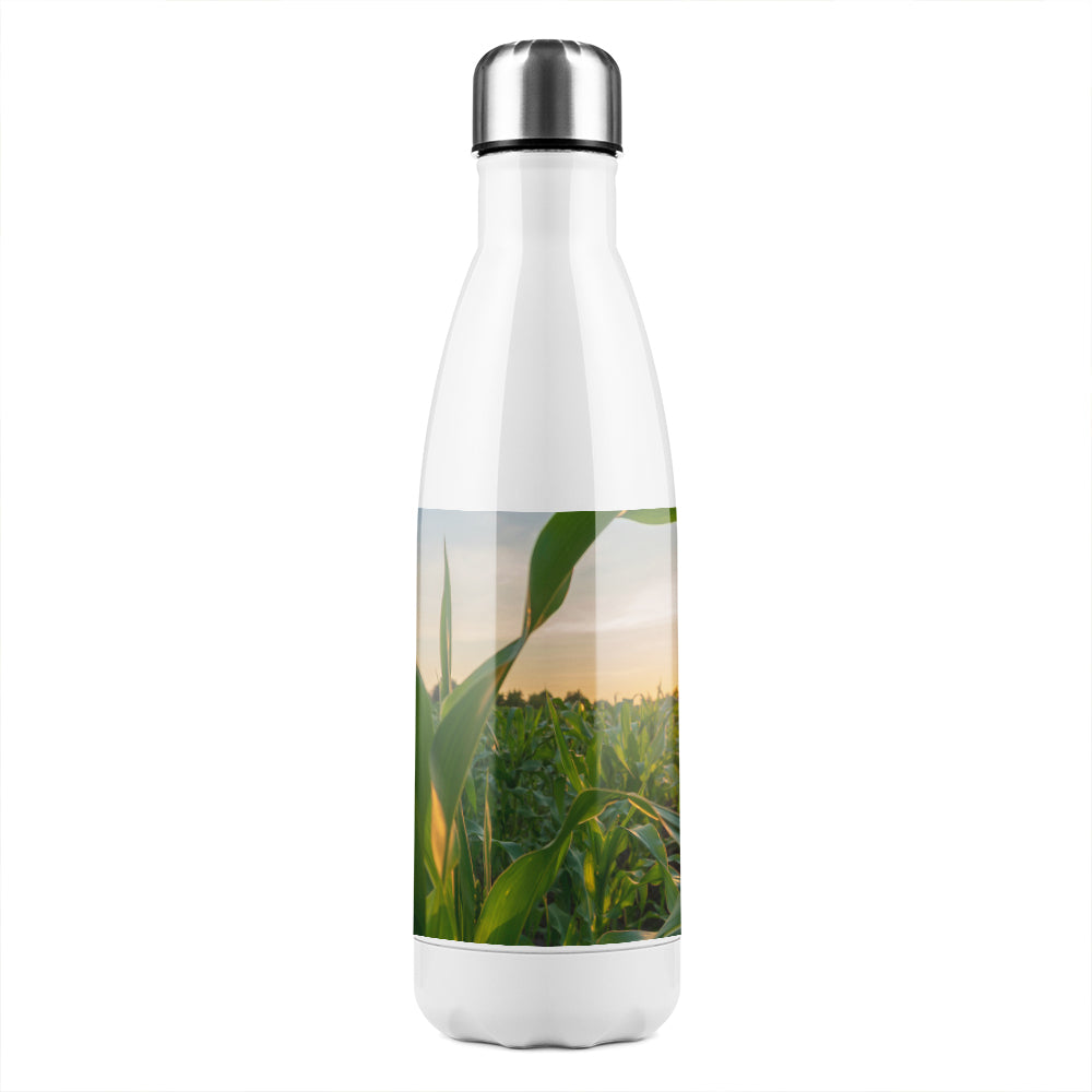 Straw bales of wheat lying on harvested field Designer Stainless Steel Bottle