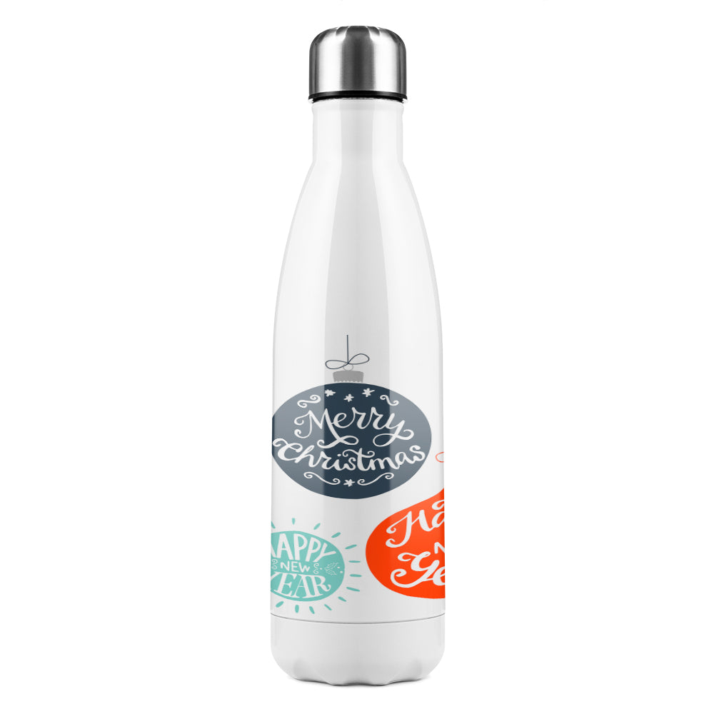 Vintage Christmas Baubles With Merry Christmas Dining Stainless Steel Bottle
