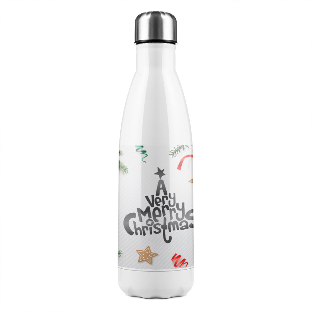 Merry Christmas Hand Drawn Lettering Dining Stainless Steel Bottle