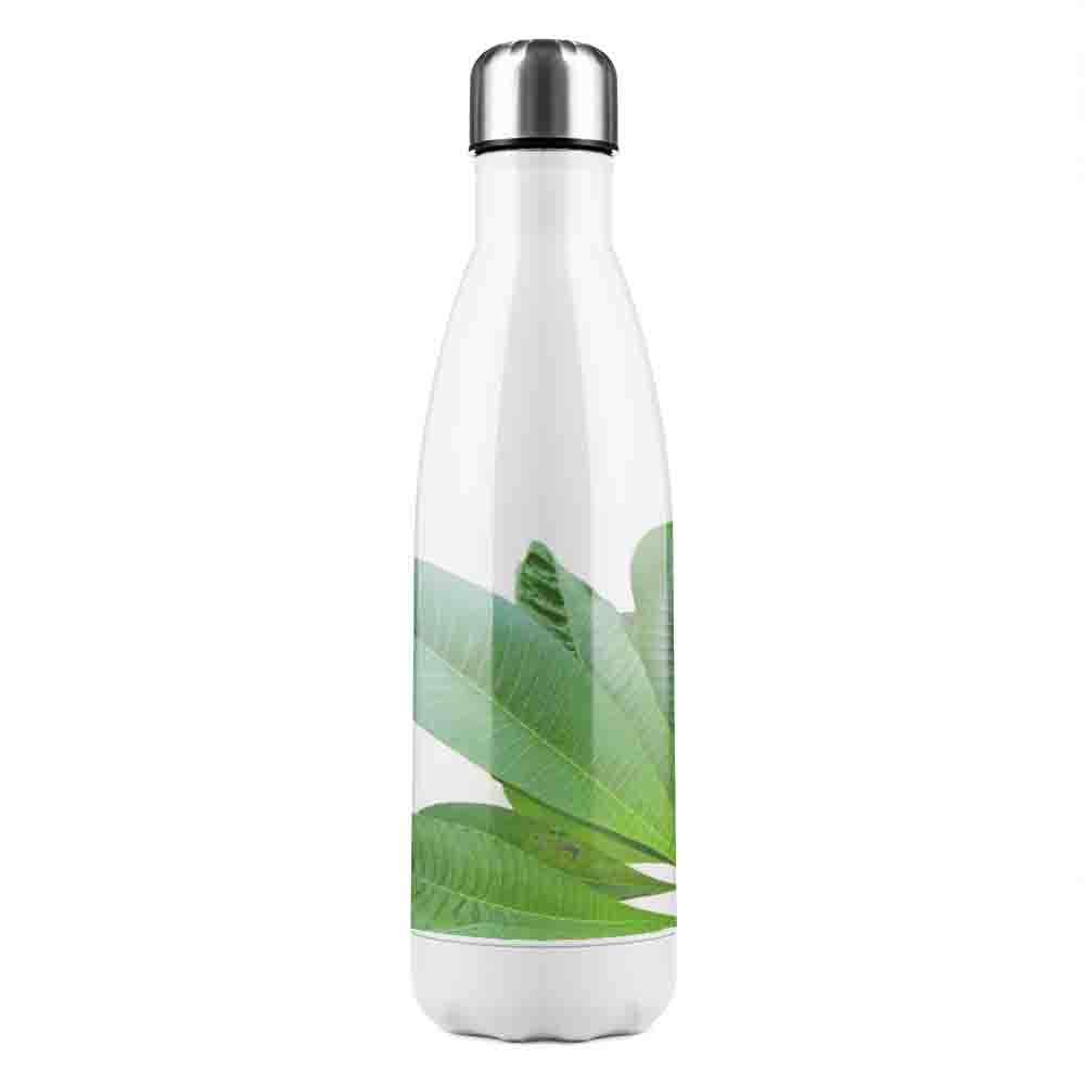 Collection Of Green Leaves On White Stainless Steel Bottle