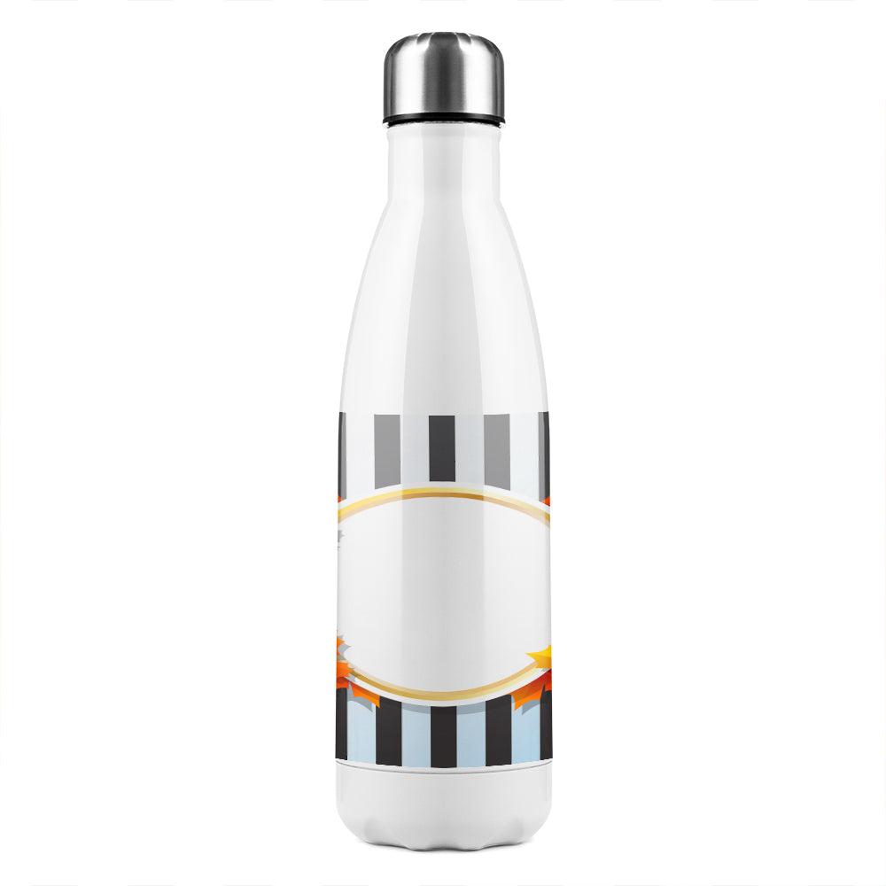 Black Stripes Autumn Leaves Stainless Steel Bottle