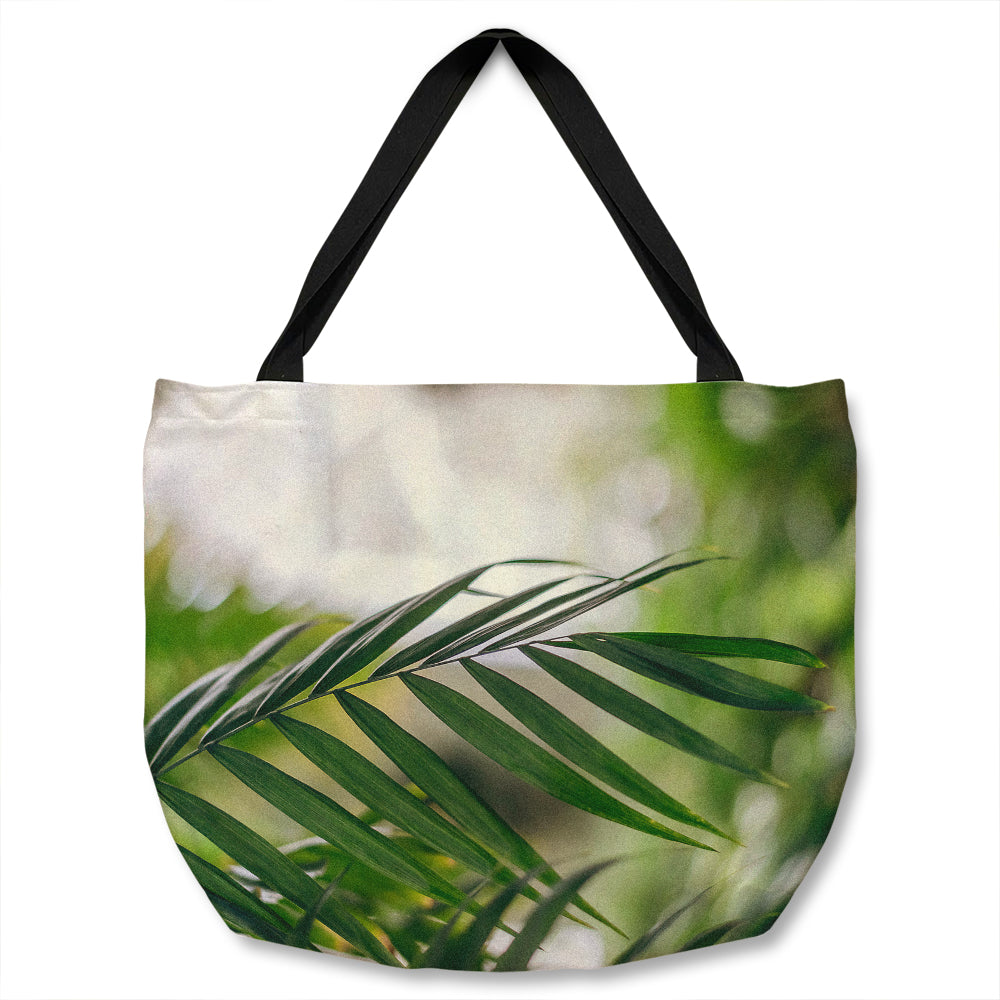 Closeup of green palm leaf Designer Tote bag