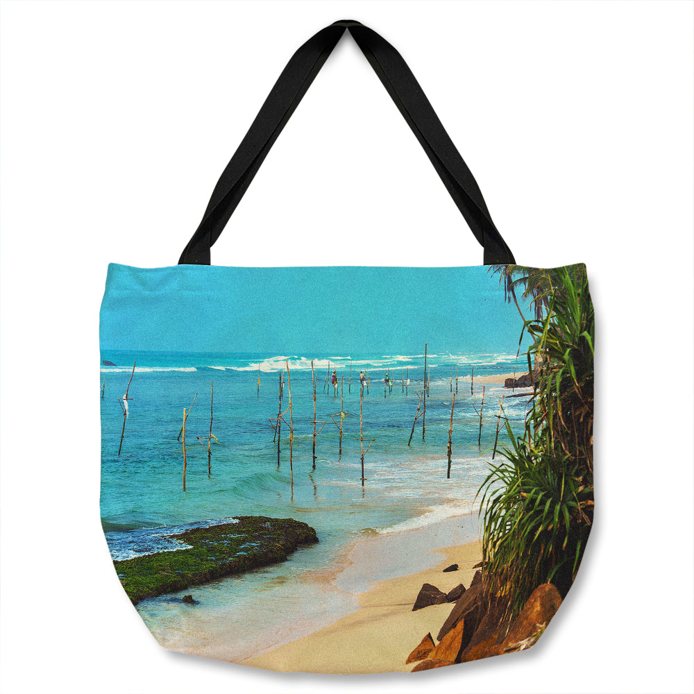 Fishermen on the ocean coast of Sri Lanka Designer Tote bag