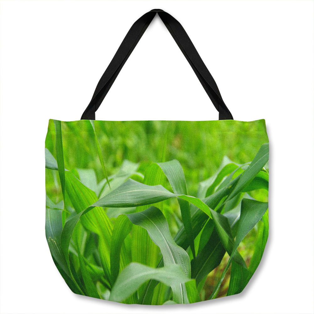 Green Leaves corn fields as background Designer Tote bag