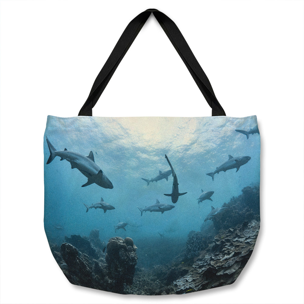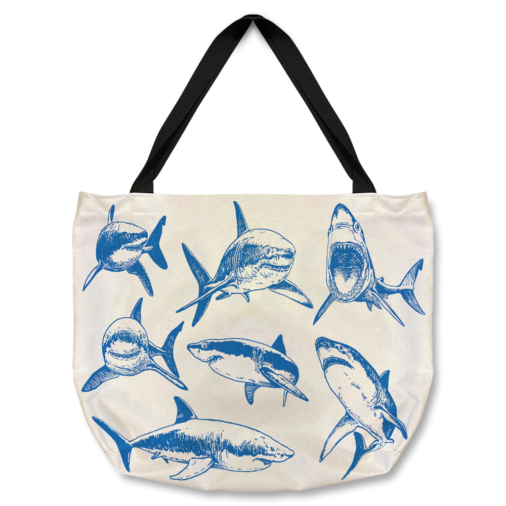 Graphical of blue sharks isolated on white background Designer Tote bag