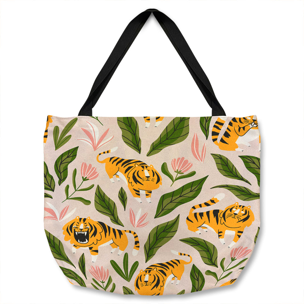 Cute tigers and tropical leaves and flowers Designer Tote bag