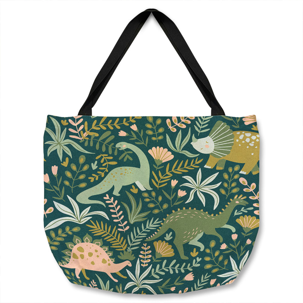 Hand drawn dinosaurs and tropical leaves and flowers. Designer Tote bag