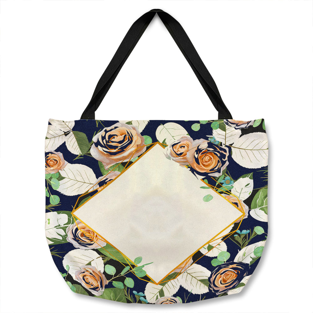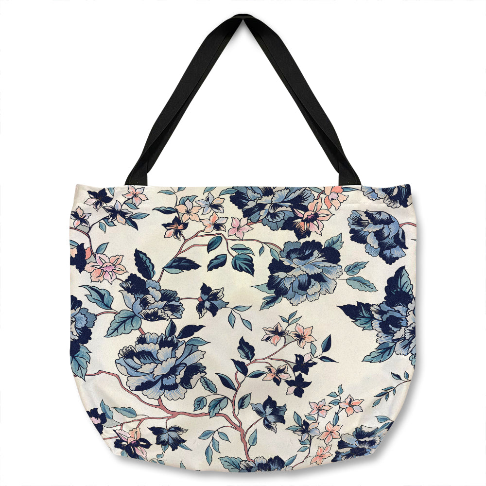 Decorative Flowers On Navy Tote bag