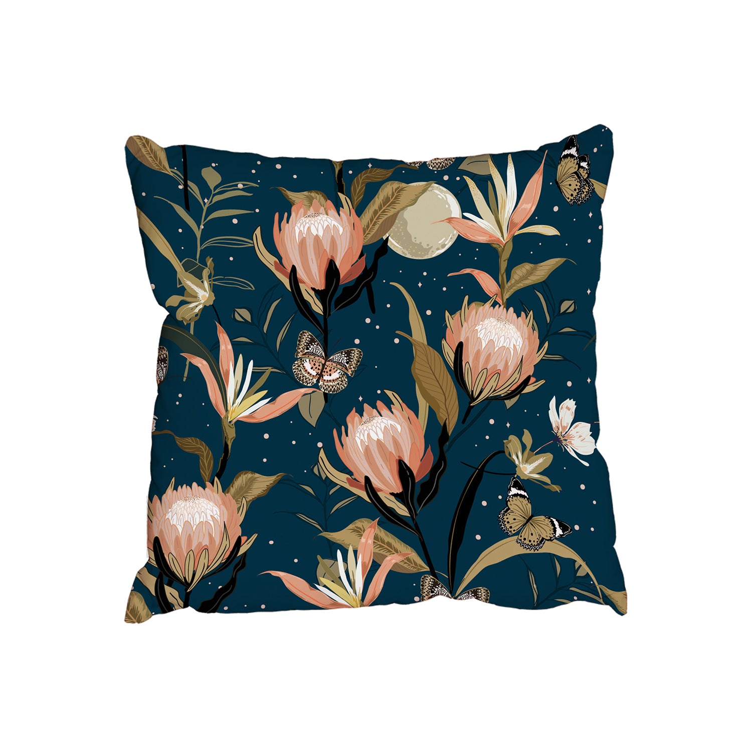 Cushions - Protea flowers and botanical garden night with moon shine and stars (Cushion)