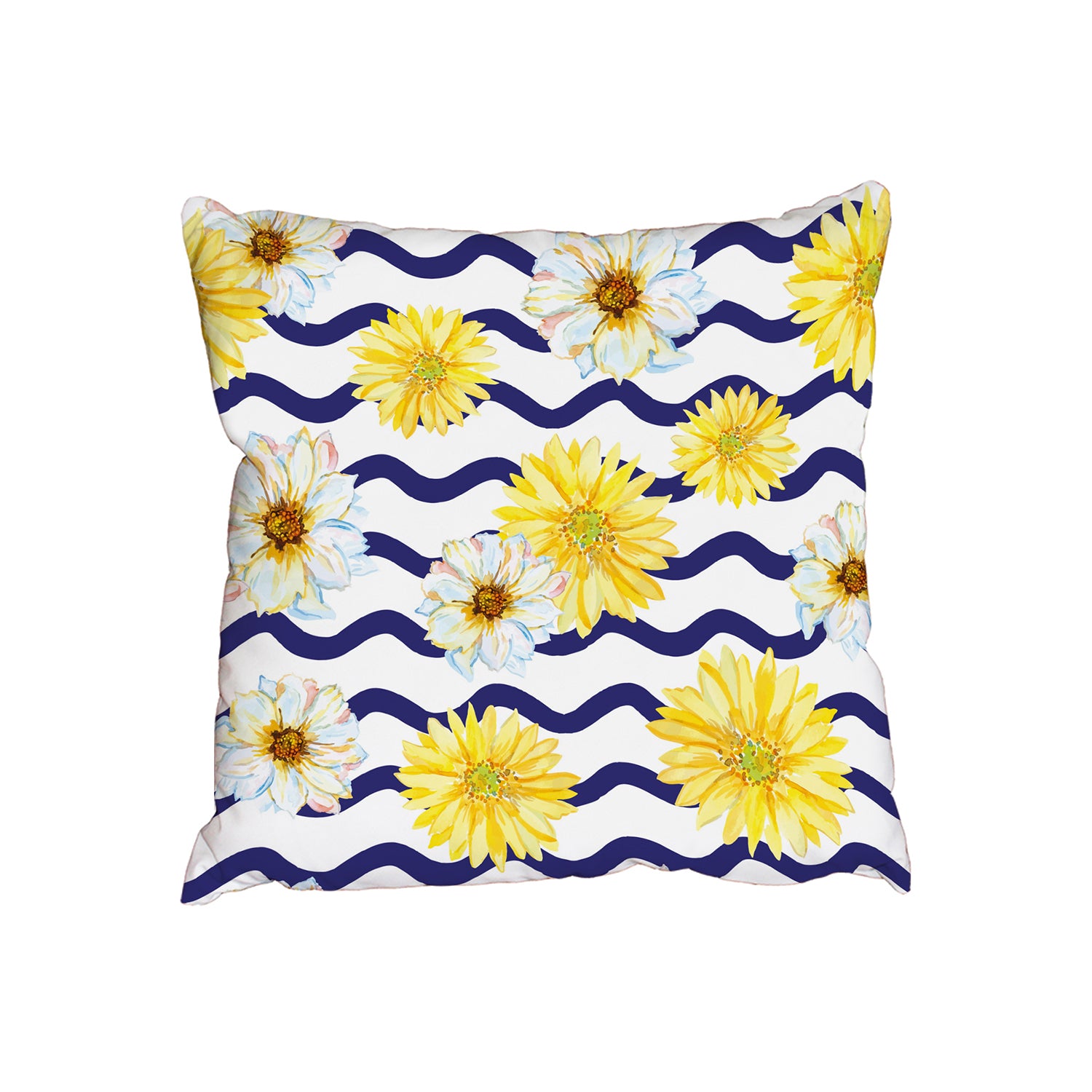Cushions - White and yellow daisies on the wavy striped background (Cushion)