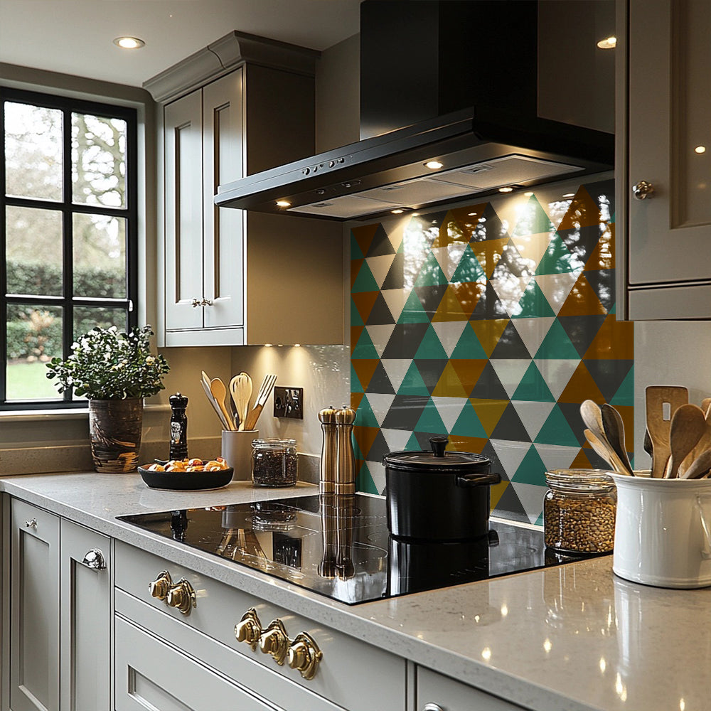 Bring bold artistry into your kitchen with a splashback that combines vibrant colors and sleek, toughened glass. The durable, heat-resistant material is built to last, while its smooth, glossy surface is easy to clean. Light-reflecting and eye-catching, this splashback adds a modern touch to any space. A perfect blend of style and functionality for today’s kitchens.