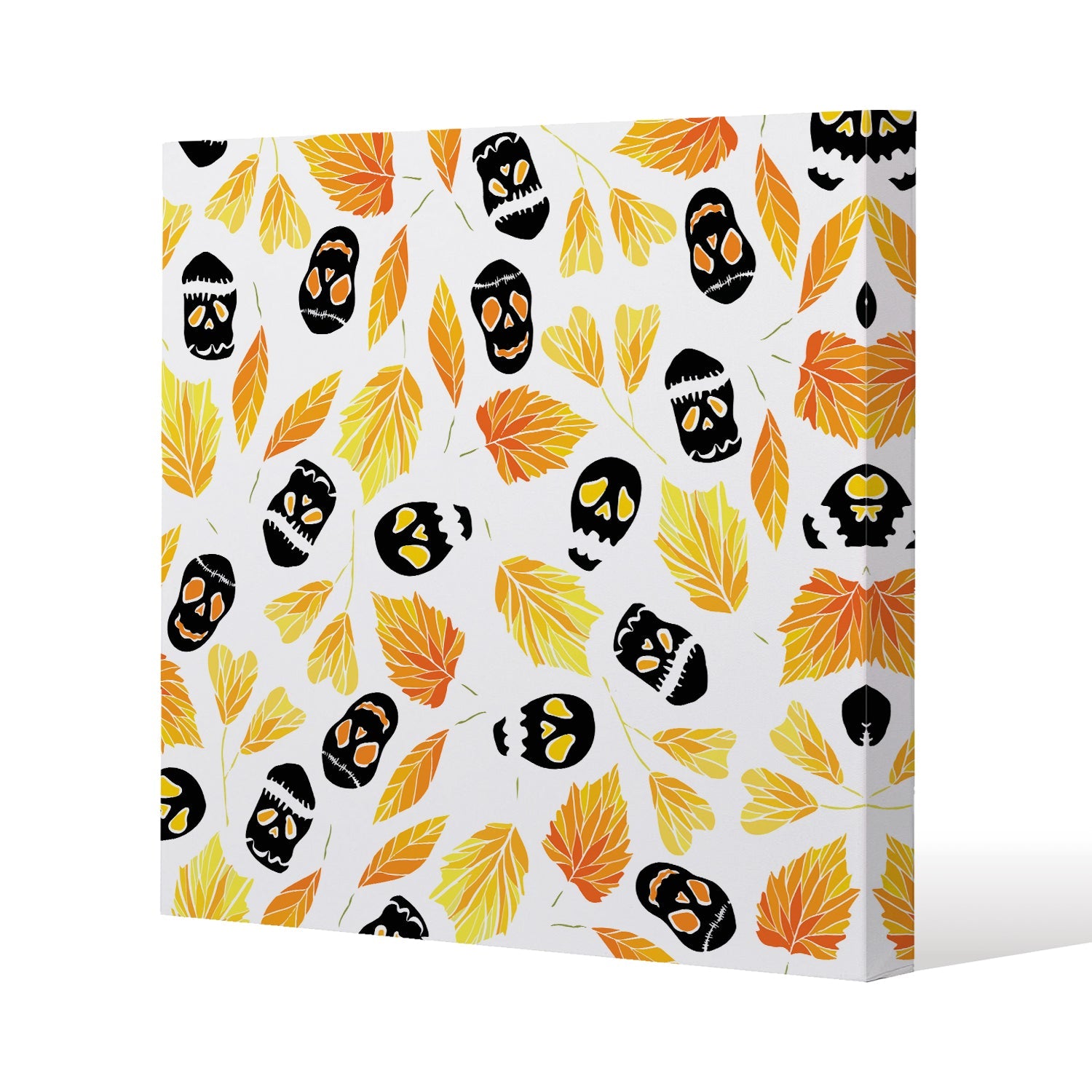 Autumn Leaves & Halloween Skulls Slim Style Canvas Print 60x60cm , 15mm Slim Real wood.