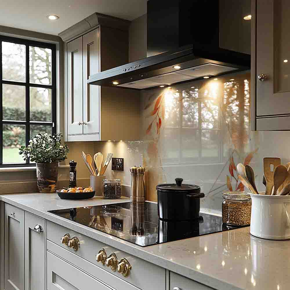 Bring bold artistry into your kitchen with a splashback that combines vibrant colors and sleek, toughened glass. The durable, heat-resistant material is built to last, while its smooth, glossy surface is easy to clean. Light-reflecting and eye-catching, this splashback adds a modern touch to any space. A perfect blend of style and functionality for today’s kitchens.