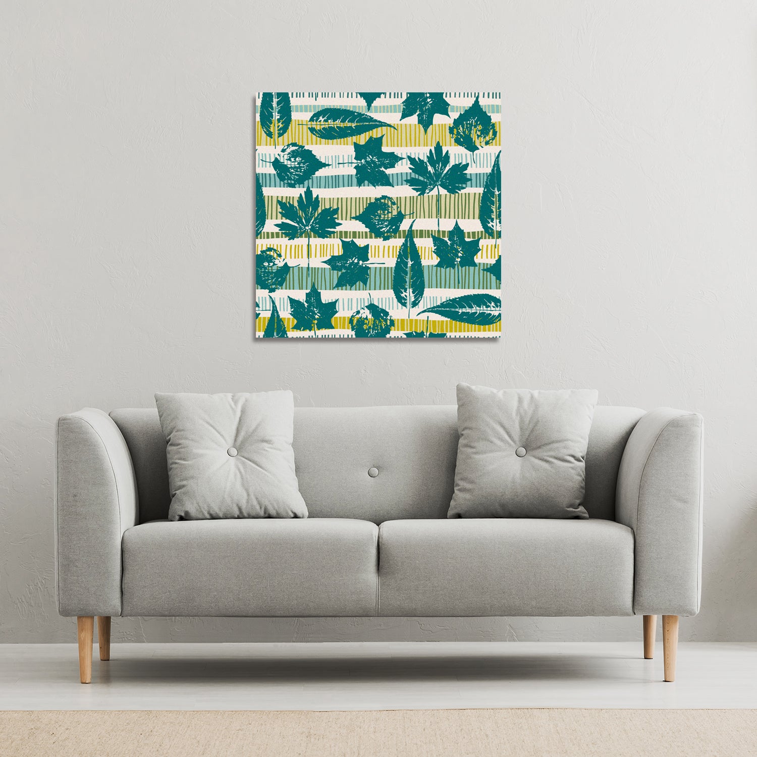 autumn seamless pattern with leaves on geometric background (Canvas Print)