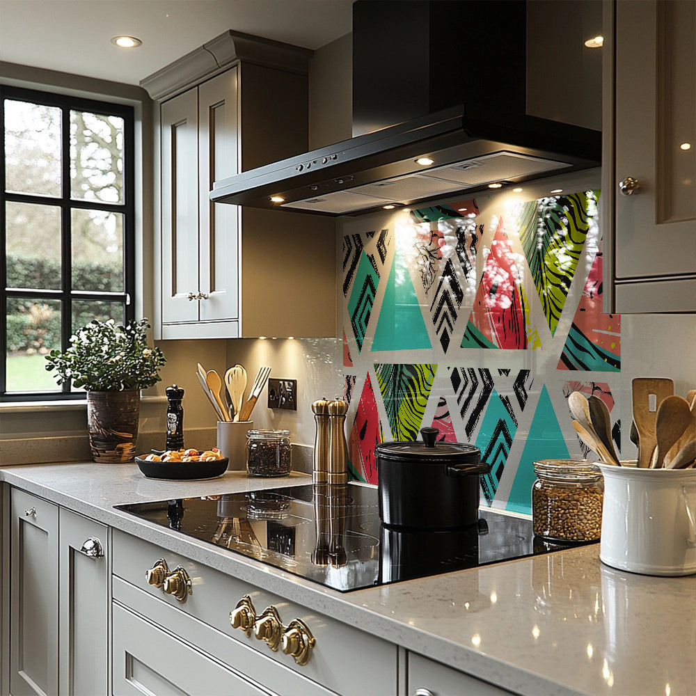 Bring bold artistry into your kitchen with a splashback that combines vibrant colors and sleek, toughened glass. The durable, heat-resistant material is built to last, while its smooth, glossy surface is easy to clean. Light-reflecting and eye-catching, this splashback adds a modern touch to any space. A perfect blend of style and functionality for today’s kitchens.