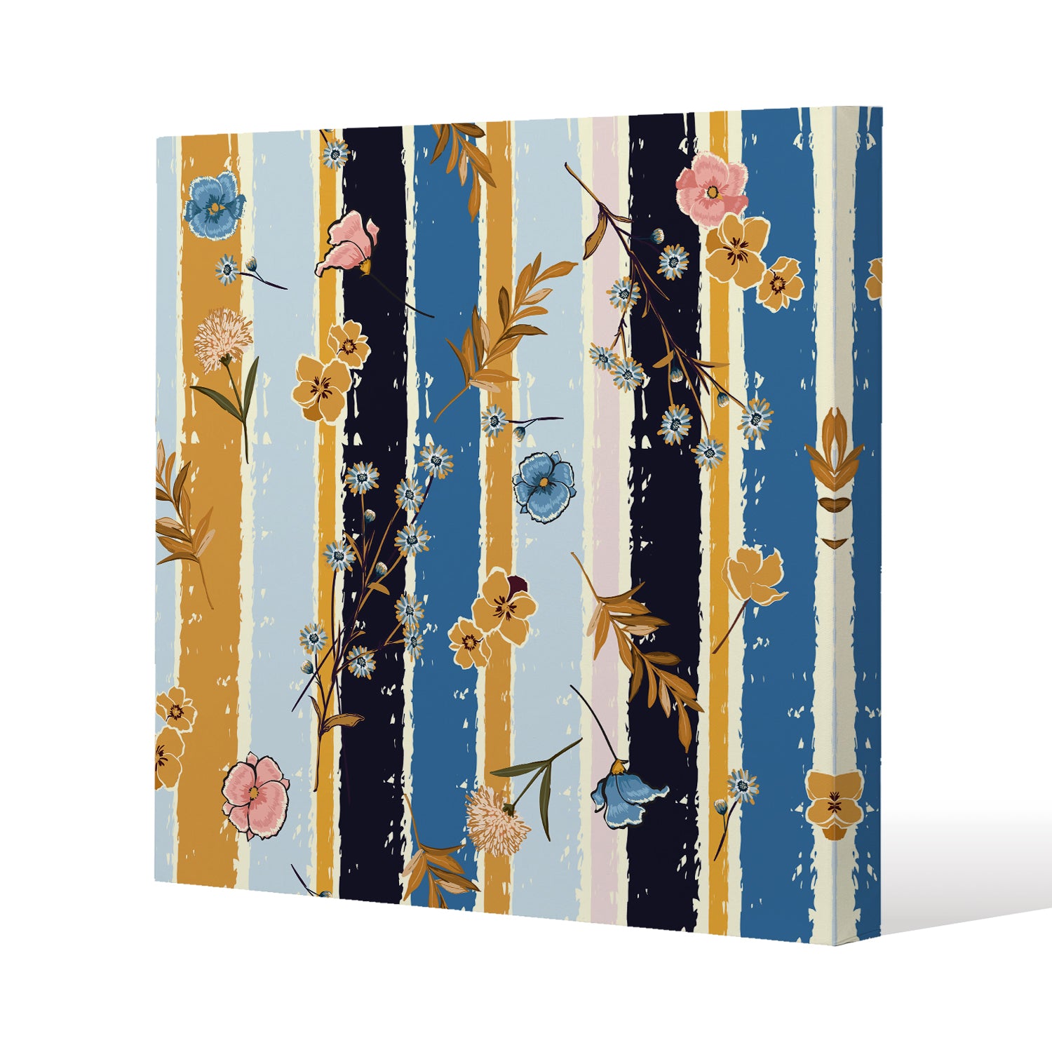 Beautiful meadow flowers on candy colorful brush stripe (Canvas Print)