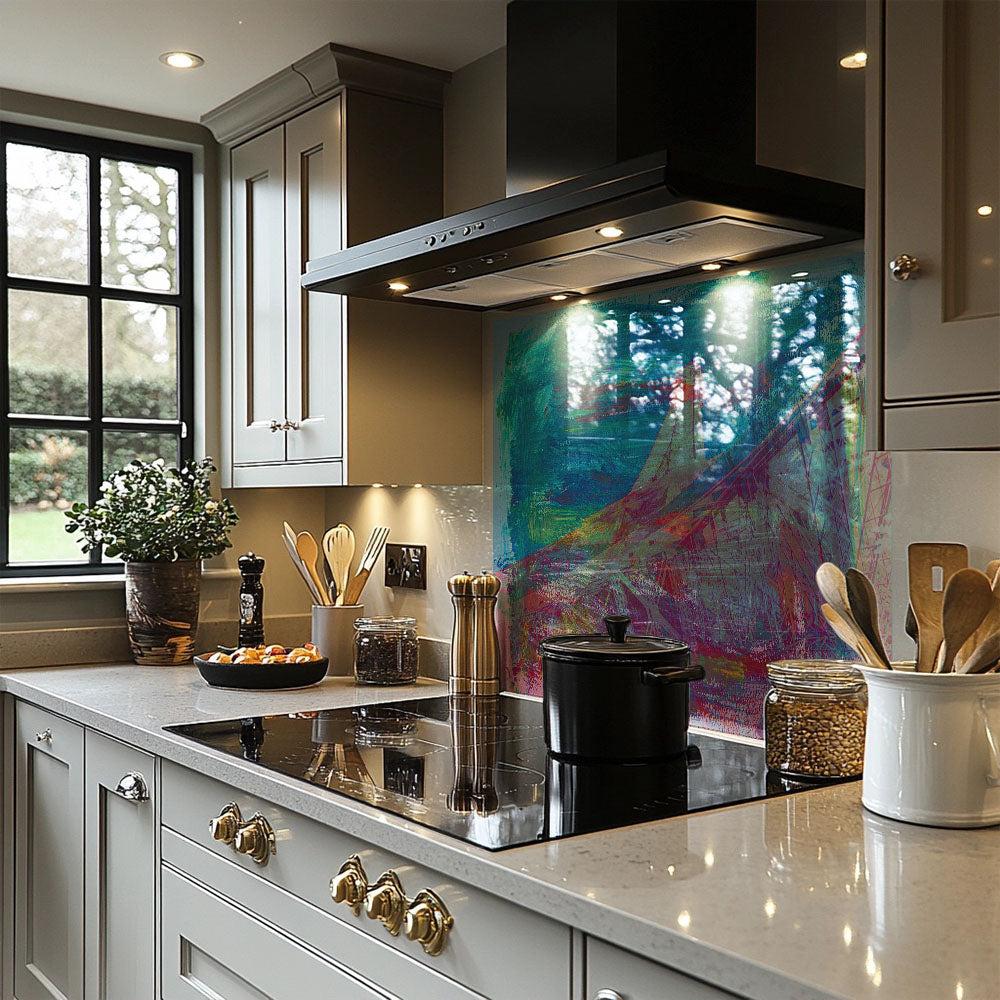 Bring bold artistry into your kitchen with a splashback that combines vibrant colors and sleek, toughened glass. The durable, heat-resistant material is built to last, while its smooth, glossy surface is easy to clean. Light-reflecting and eye-catching, this splashback adds a modern touch to any space. A perfect blend of style and functionality for today’s kitchens.