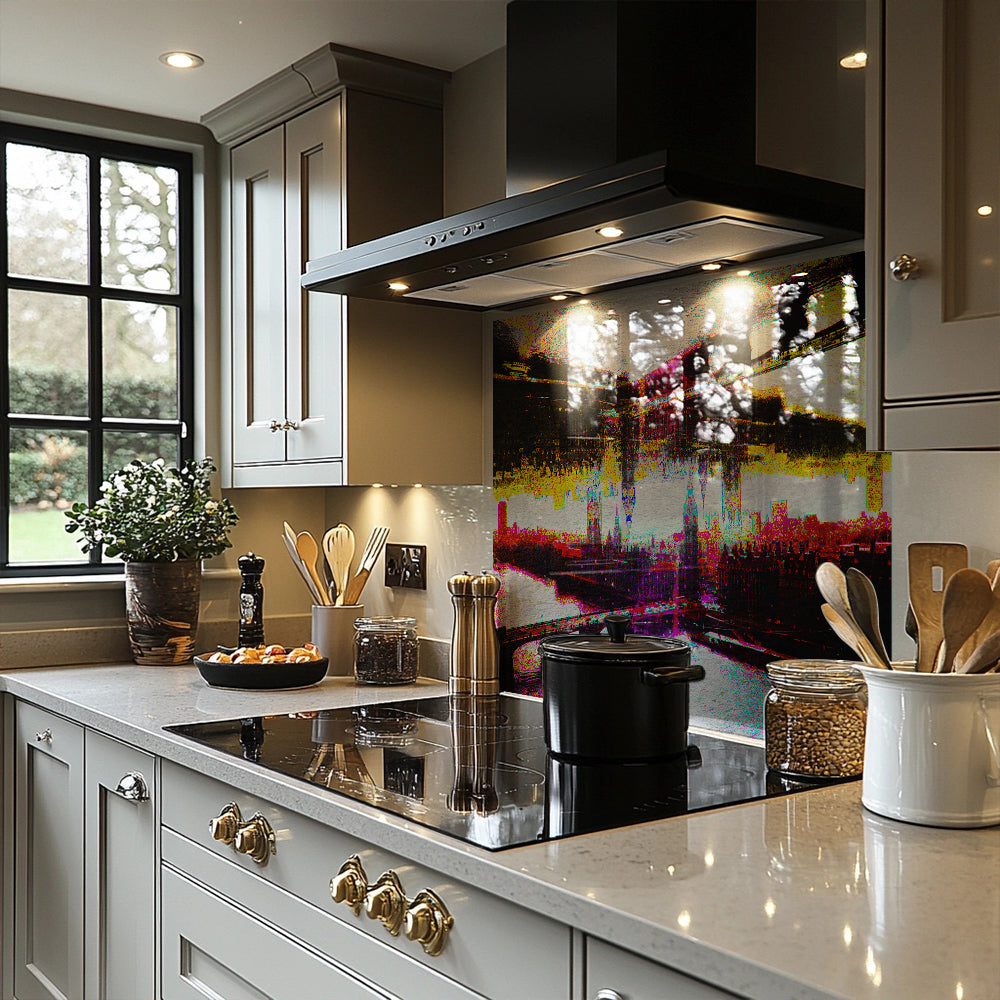 Bring bold artistry into your kitchen with a splashback that combines vibrant colors and sleek, toughened glass. The durable, heat-resistant material is built to last, while its smooth, glossy surface is easy to clean. Light-reflecting and eye-catching, this splashback adds a modern touch to any space. A perfect blend of style and functionality for today’s kitchens.