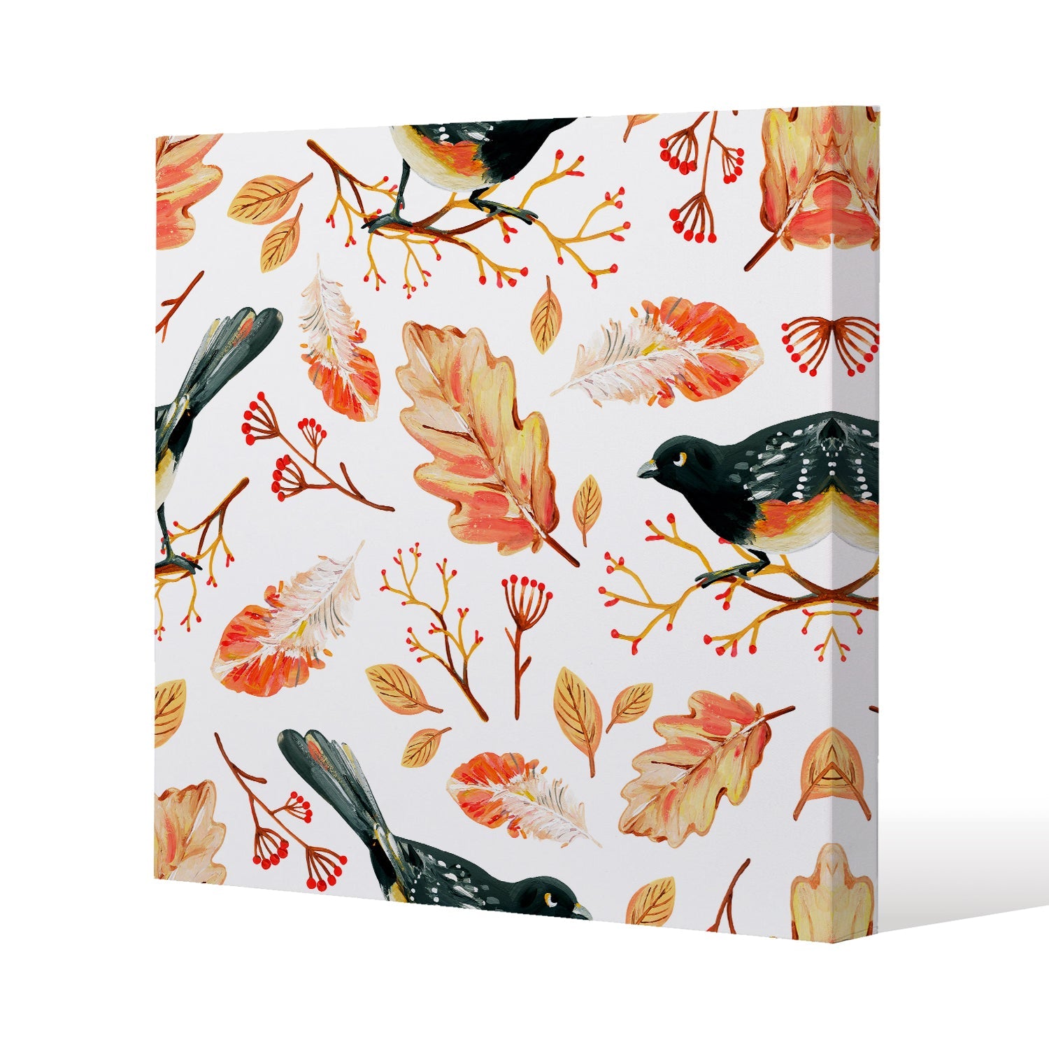 Birds & Leaves in Autumn Slim Style Canvas Print 75x75cm , 15mm Slim Real wood.
