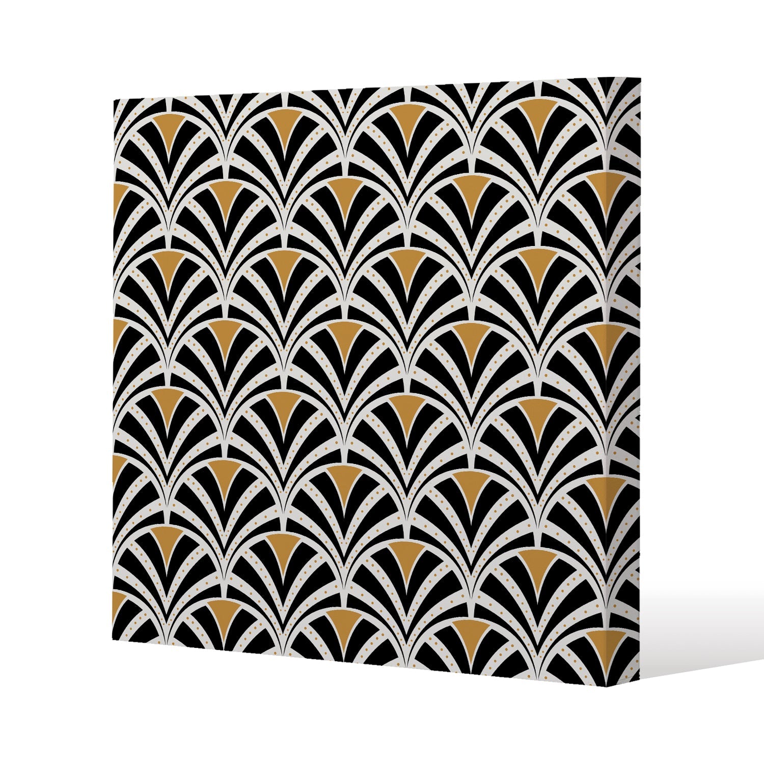 Black & Gold Shells Geometric Slim Style Canvas Print 20x20cm , 15mm Slim Real wood.